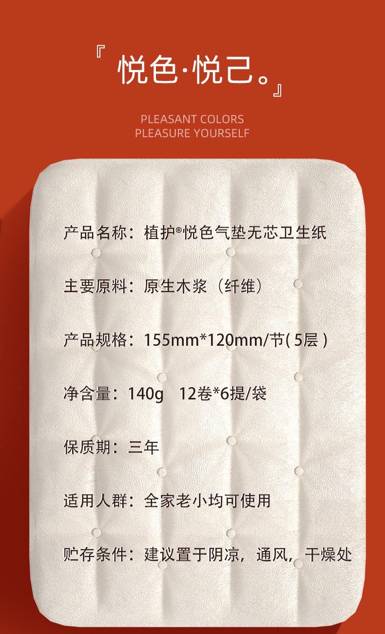 植护悦色橙无芯卷纸155*120mm/5层140g12卷/提