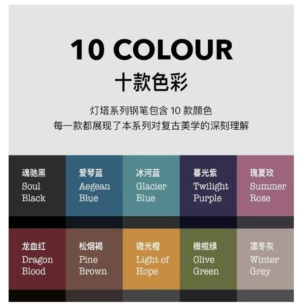 型号:灯塔系列墨水笔 类型:螺纹上墨式墨水笔 重量:墨水/宝珠笔43g/47g 颜色分类:微光橙凛冬灰橄榄绿爱琴蓝龙血红魂驰黑 书写粗细:F尖 套餐类型:官方标配 包装方式:鸿运笔记本礼盒装 适用场景:送礼书写 钢笔笔尖成分:铱金笔 笔尖种类:标准型 适用人群:商务办公人士 上墨方式:旋转吸墨 笔杆材质:金属笔尖 嵌入方式:明尖 笔身纹理:格子纹 墨水材质:非碳素墨水