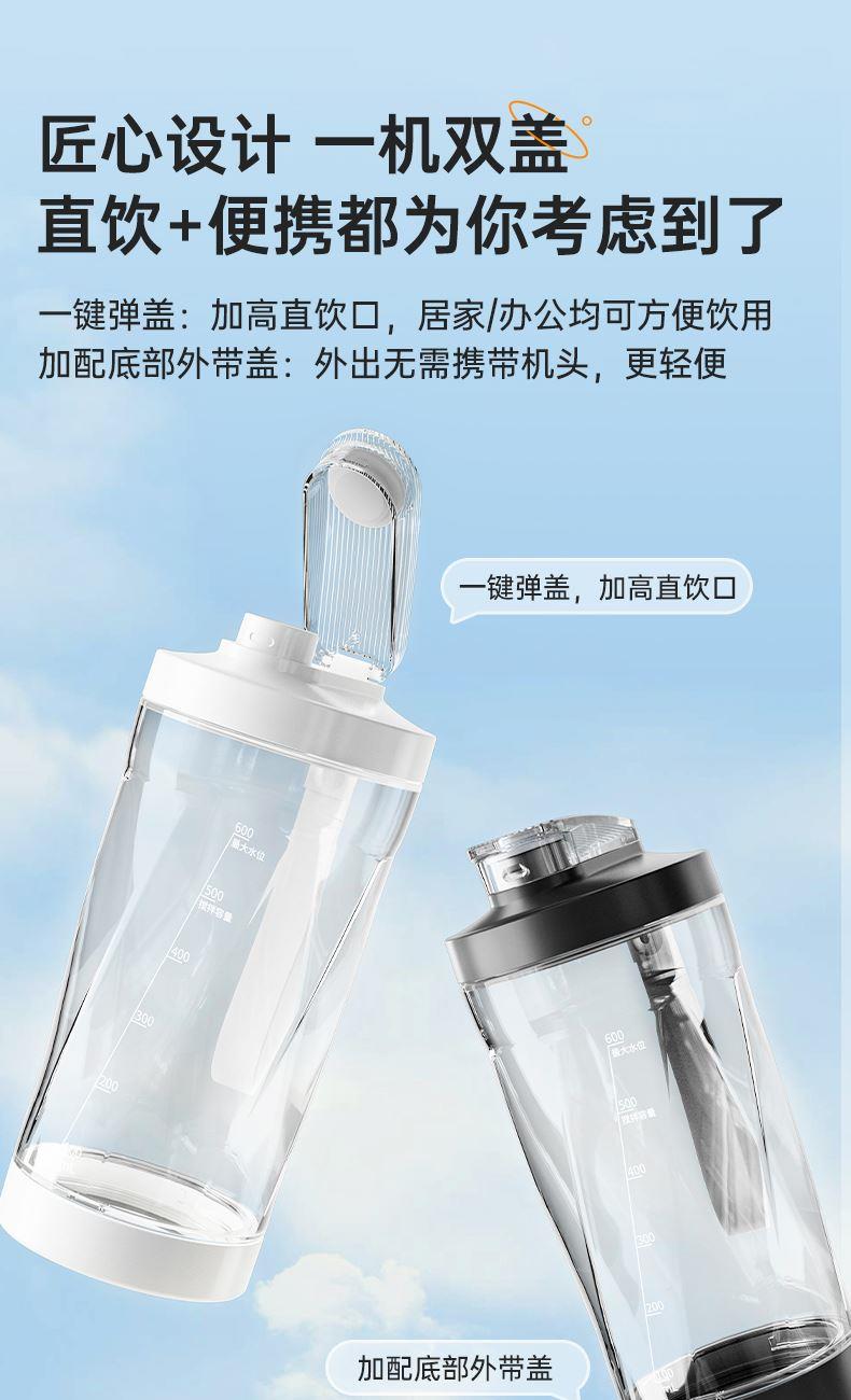 桶身PET食品用料,超大容量,500ml搅拌容量,饮水容量600ml;