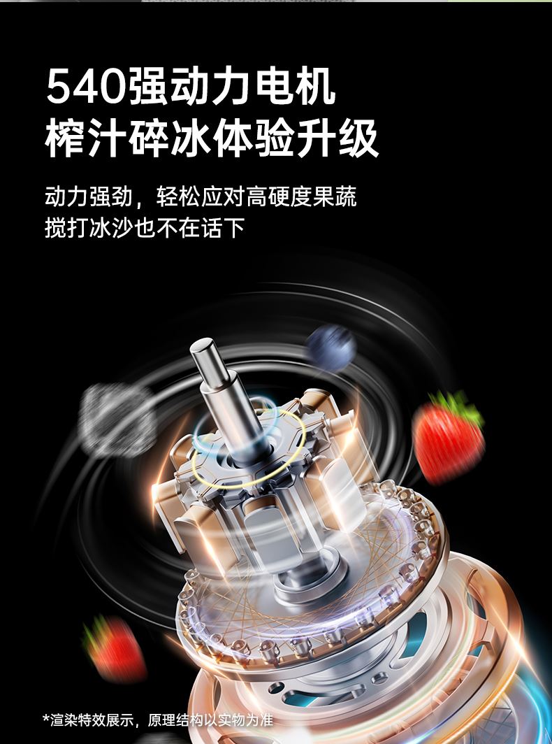 16500转/分钟,强劲7.4V大动力电机,榨汁顺畅无阻;