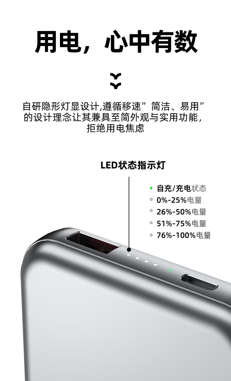 MUZILI·22.5W磁吸无线充铝合金移动电源R118W