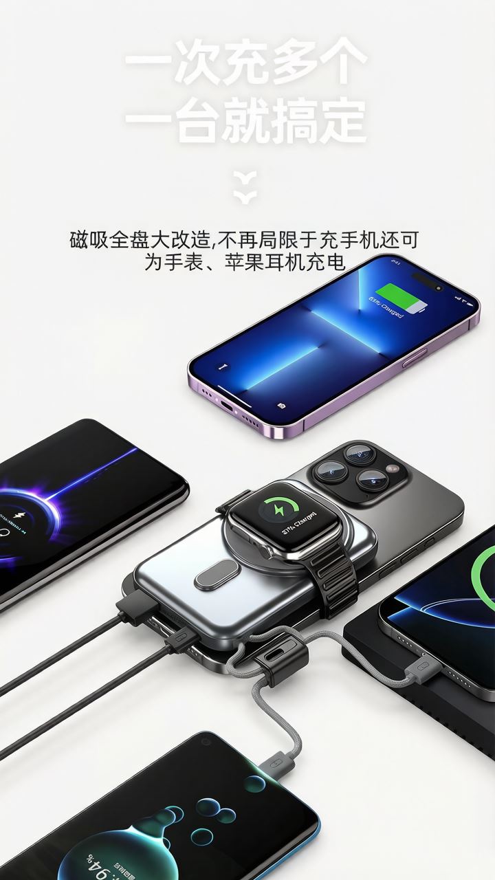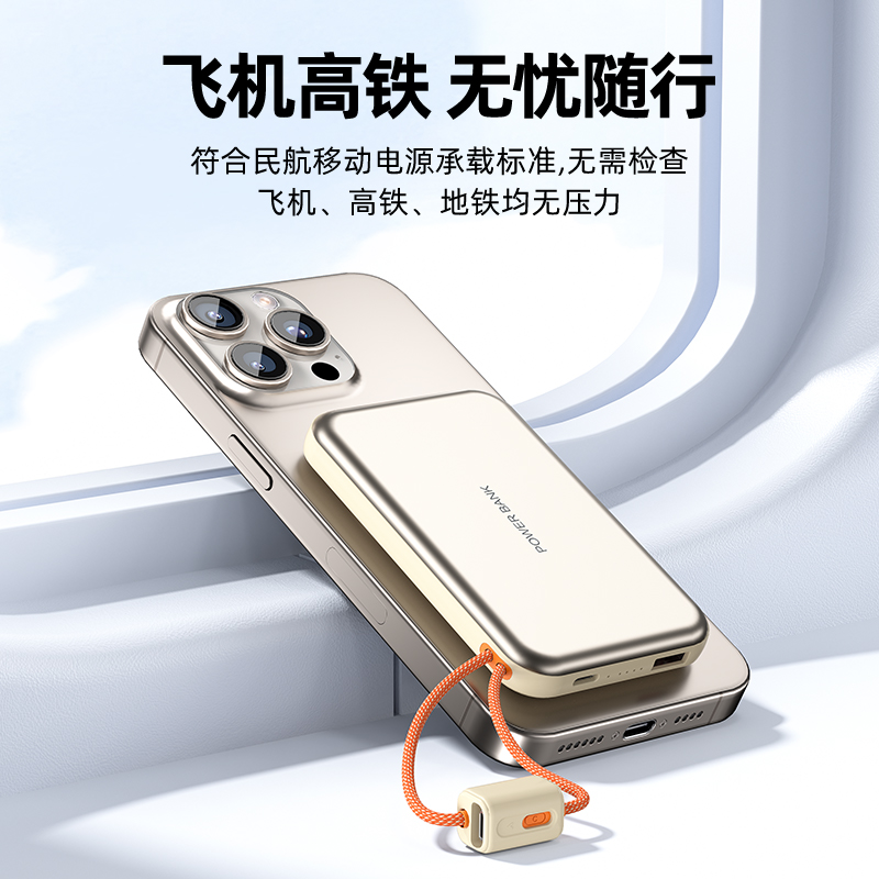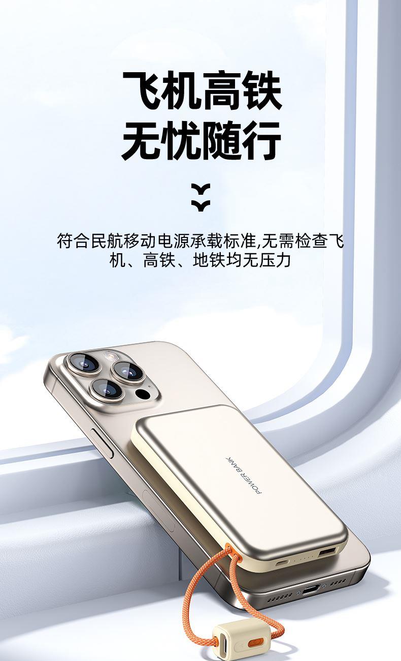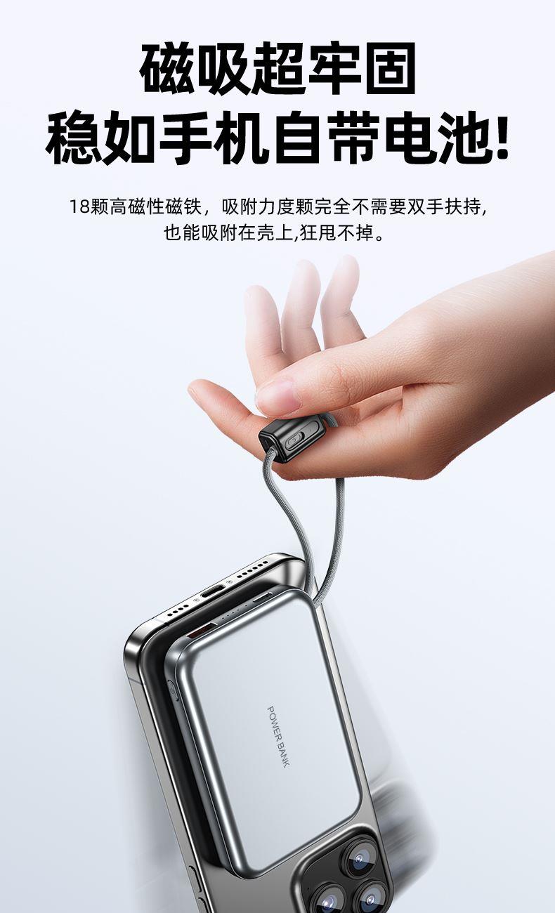【推荐理由】: 10000毫安容量,3C安全认证 15W磁吸无线充,兼容苹果华为手表 22.5W超级快充,兼容PD20W 自带苹果/Type-C接口满足各种手机充电 挂绳设计,携带方便 符合民航局标准,可随身携带