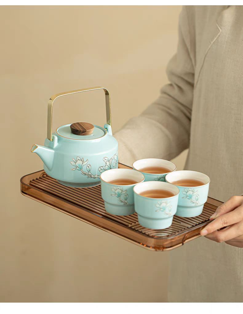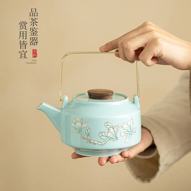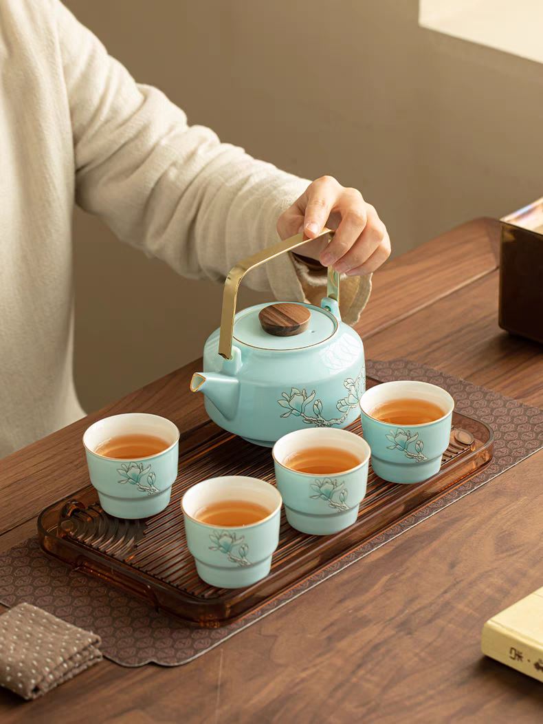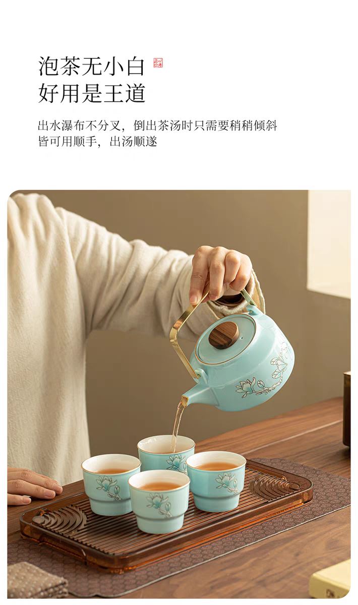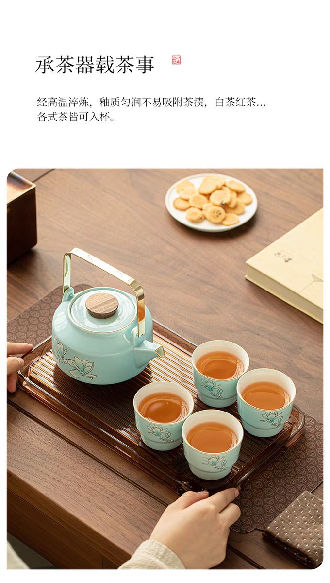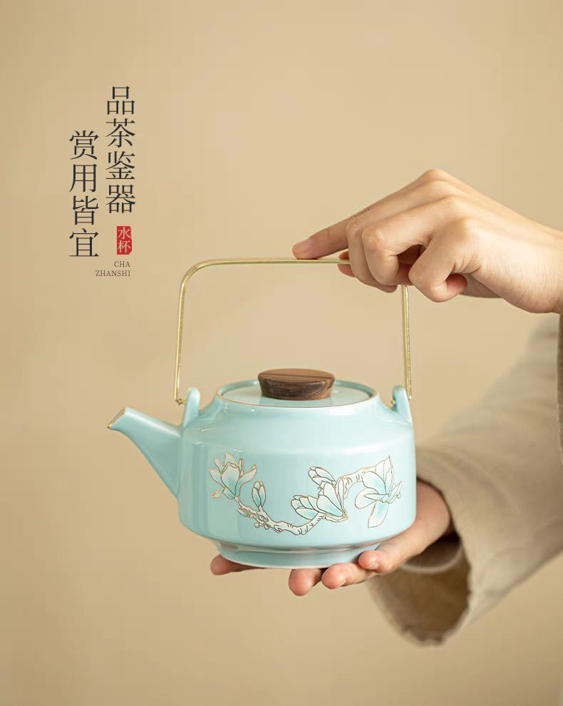 尾桥下窑枝上玉兰宫廷风鎏金提梁壶茶具套装茶室节日伴手礼品