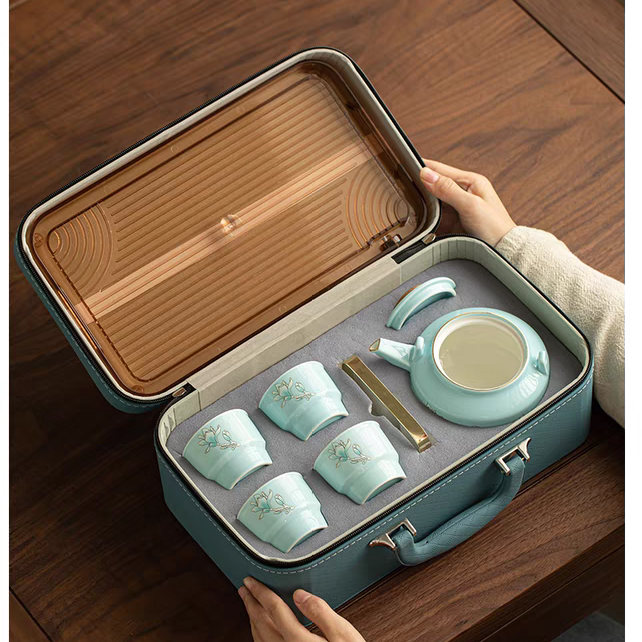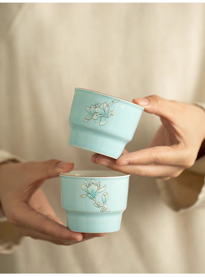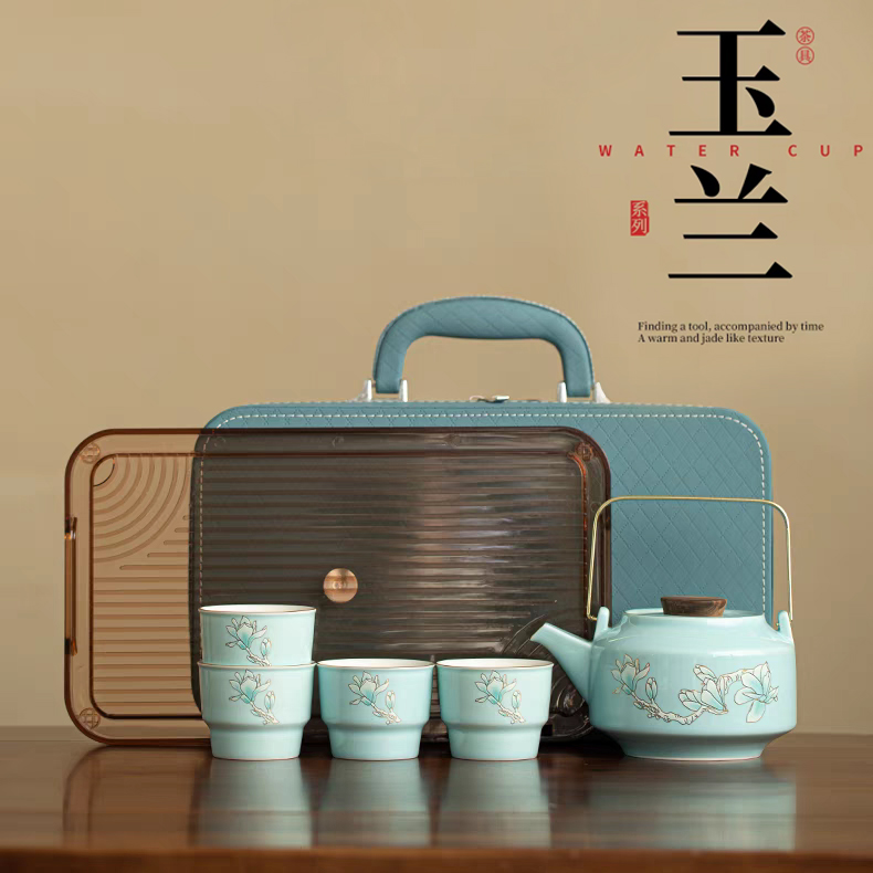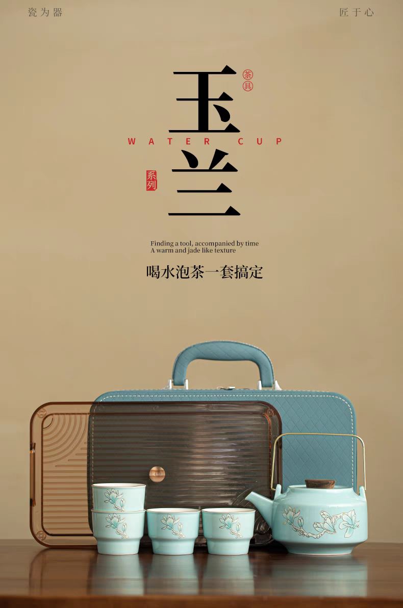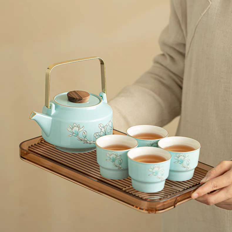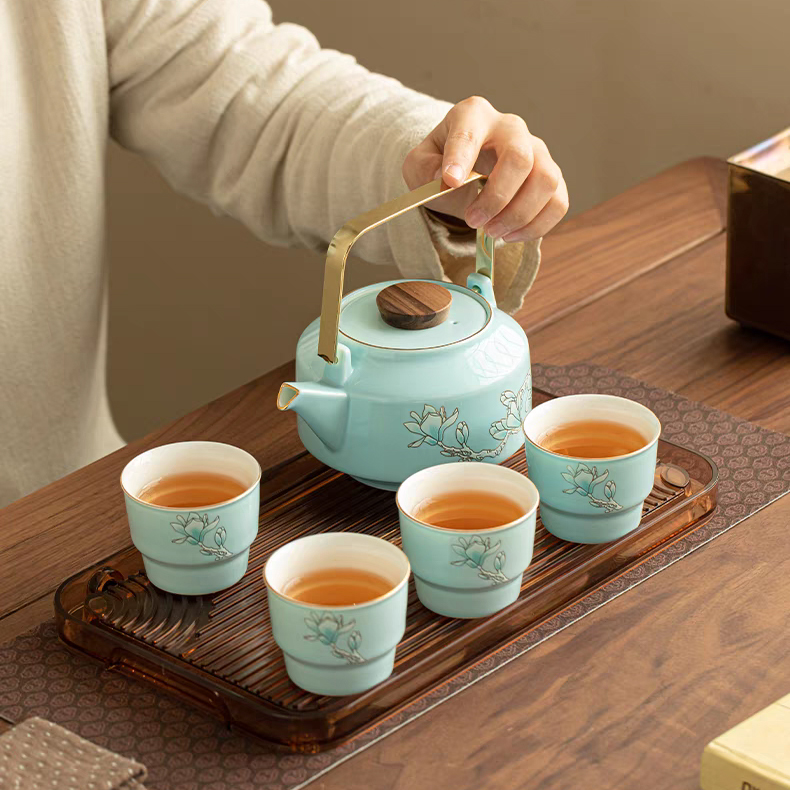 尾桥下窑枝上玉兰宫廷风鎏金提梁壶茶具套装茶室节日伴手礼品