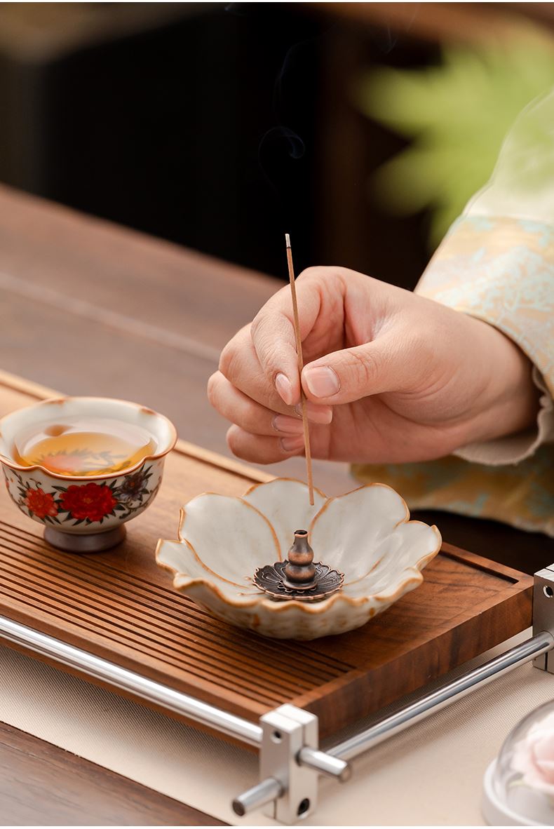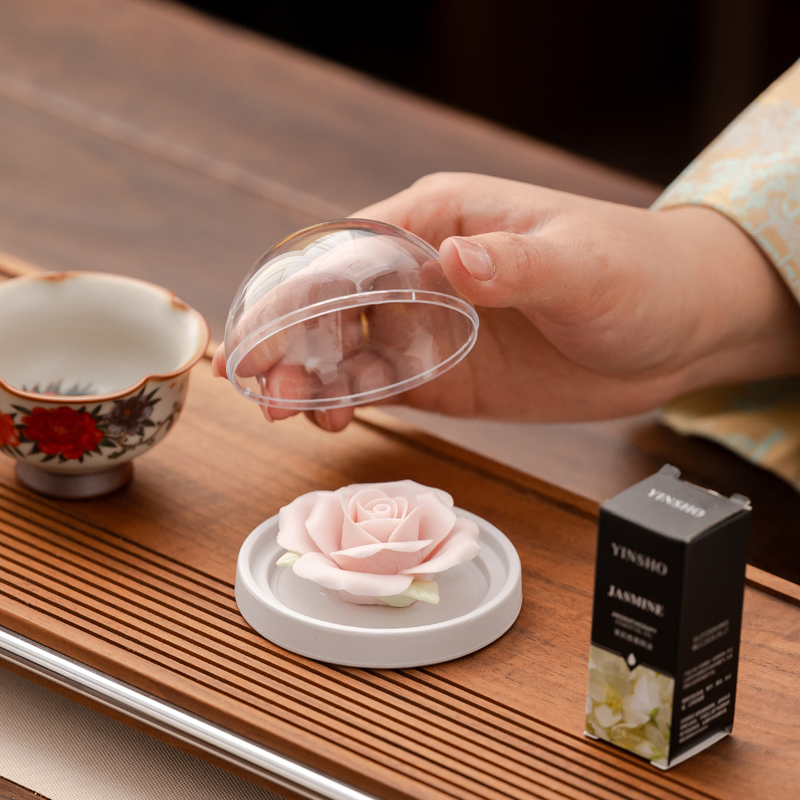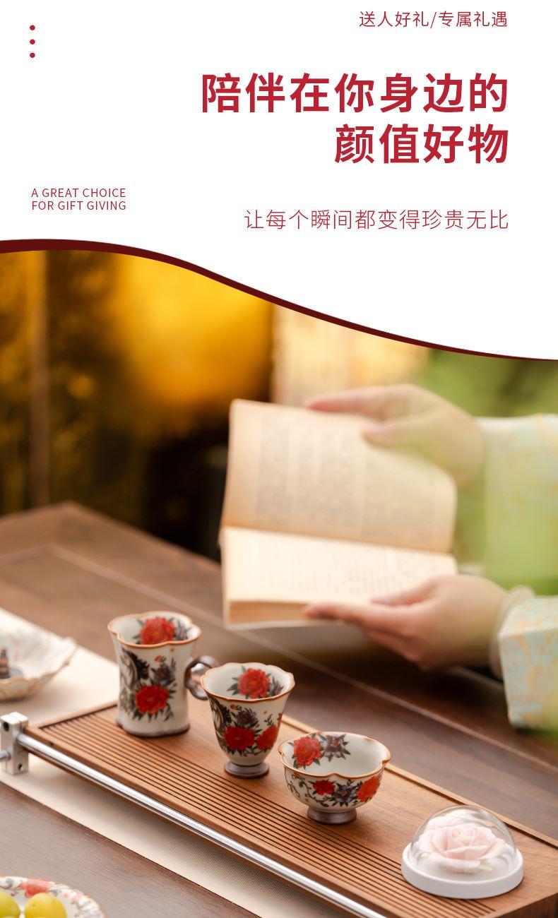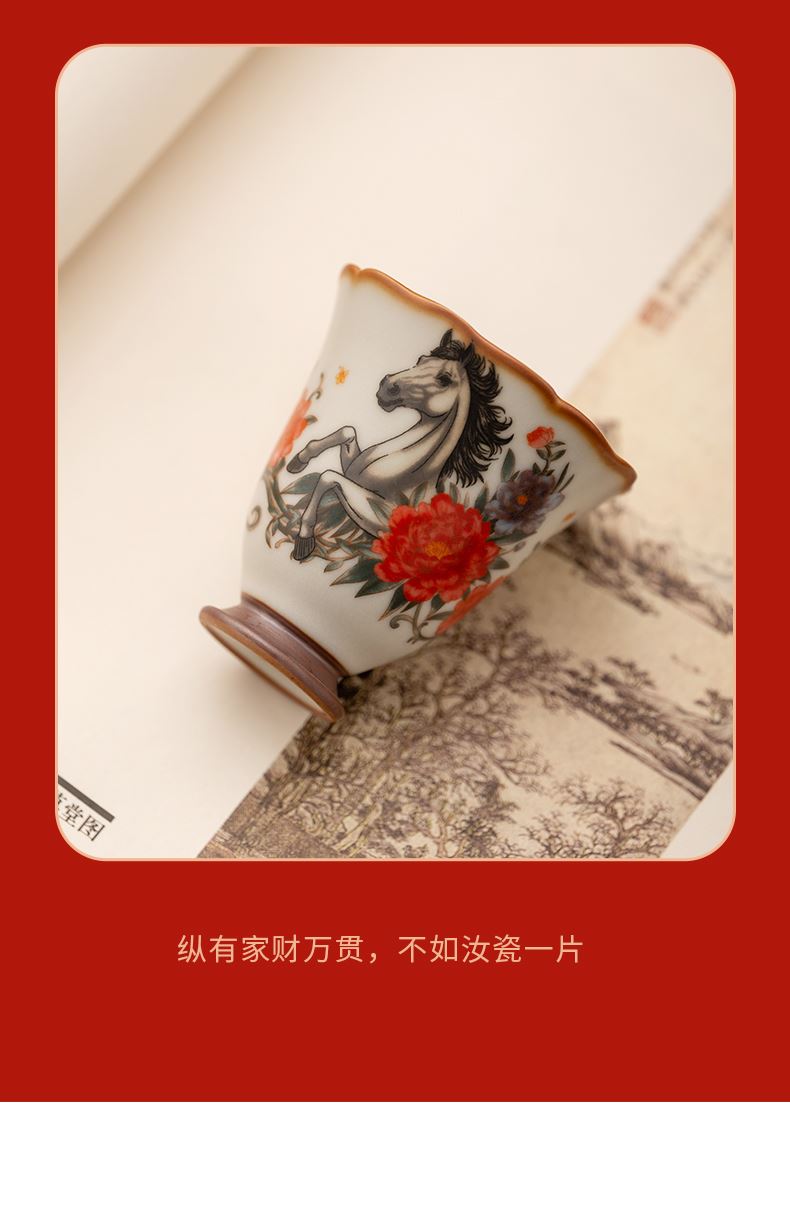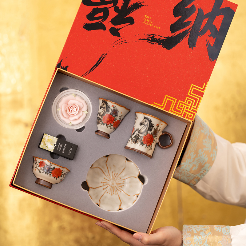 配 制:1手柄杯 1闻香杯 1碗 1香盘 1玫瑰瓷雕扩香器 1精油 1收藏证书 1礼盒 手提袋 材质:汝黄瓷 规格:手柄杯 6*9cm 闻香杯6.5*6.3cm 碗7.6*4.4cm 香盘12*3.6cm 玫瑰扩香器7.9*4.3cm 容量:手柄杯70ml 推荐说明:马年开门红礼品,马上有钱香薰套装,非遗文化手工瓷雕玫瑰,扩香器,配精油一瓶。亚黄汝瓷,玛瑙入釉,蝉翼开片,内外皆有花面,家有千财万贯,不如汝窑一片。技术新品。画面堆料技术,富有立体浮雕质感,真实感强。杯身开片,可养瓷。