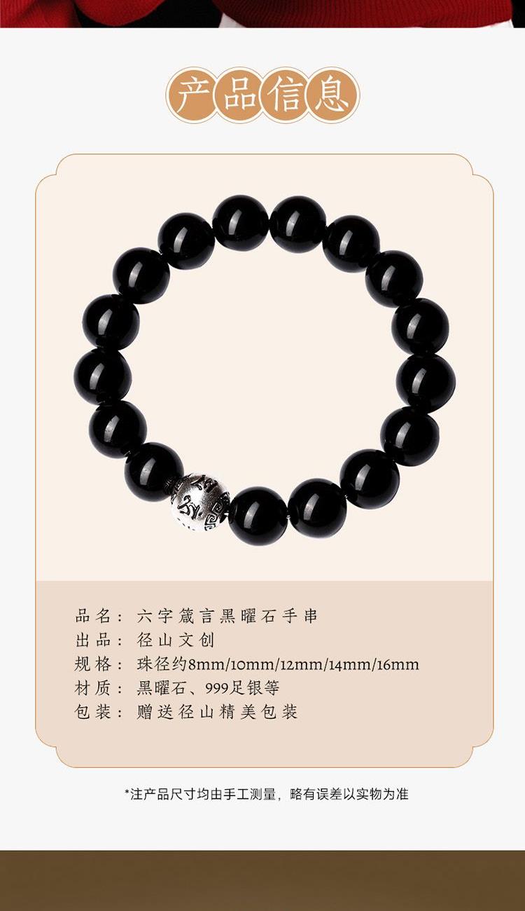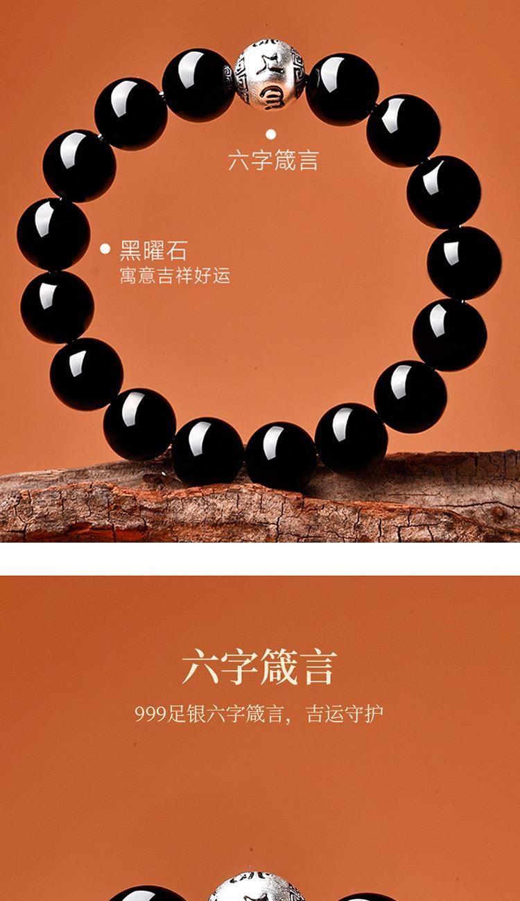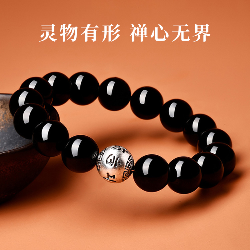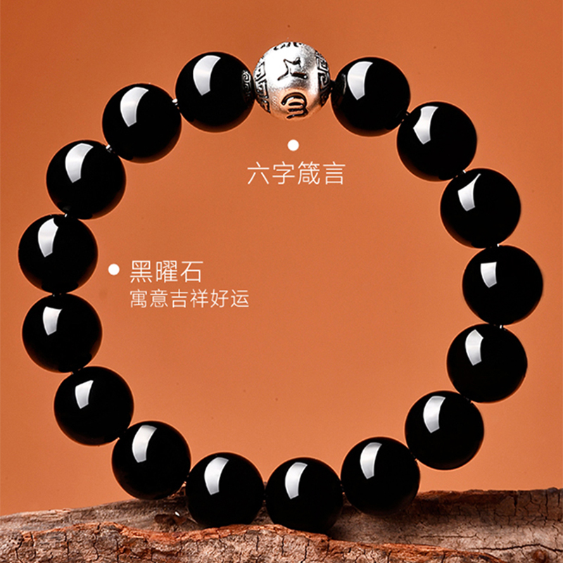 双重辟邪,强力守护: 黑曜石本身已是极强的辟邪物,再加上佛教中具威力的六字大明咒,寓意着辟邪、挡煞、防小人的,是为佩戴者构建的一个“移动保护罩”。 净化与转化: 黑曜石吸收的负能量,可以通过六字箴言的无上佛法能量进行净化和转化,避免负能量堆积。 静心定志: 在紧张或烦躁时,触摸和观看手串,可以提醒自己念诵箴言,从而迅速让内心回归平静,获得精神上的支持和慰藉。