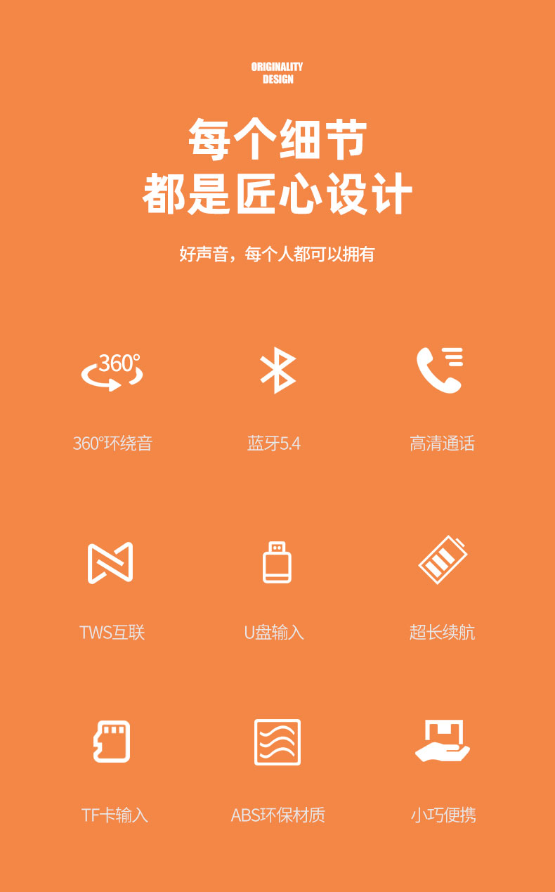 蓝牙版本:5.4 电池容量:1200mAh 箱体材质:ABS 电压:DC 5V/1A 输出功率:5W 重量:约207g