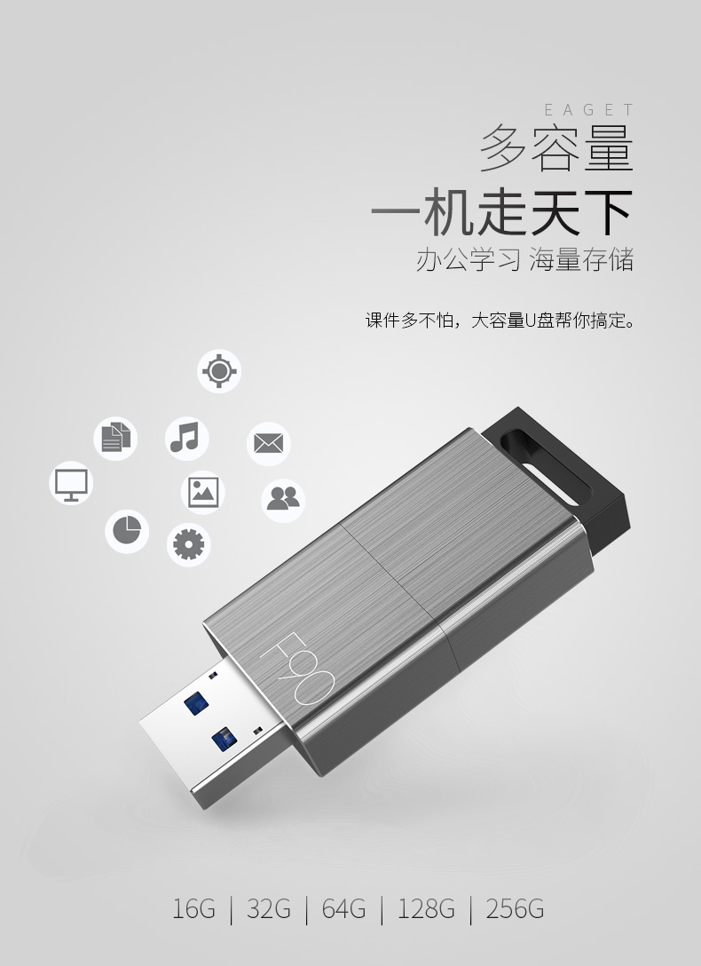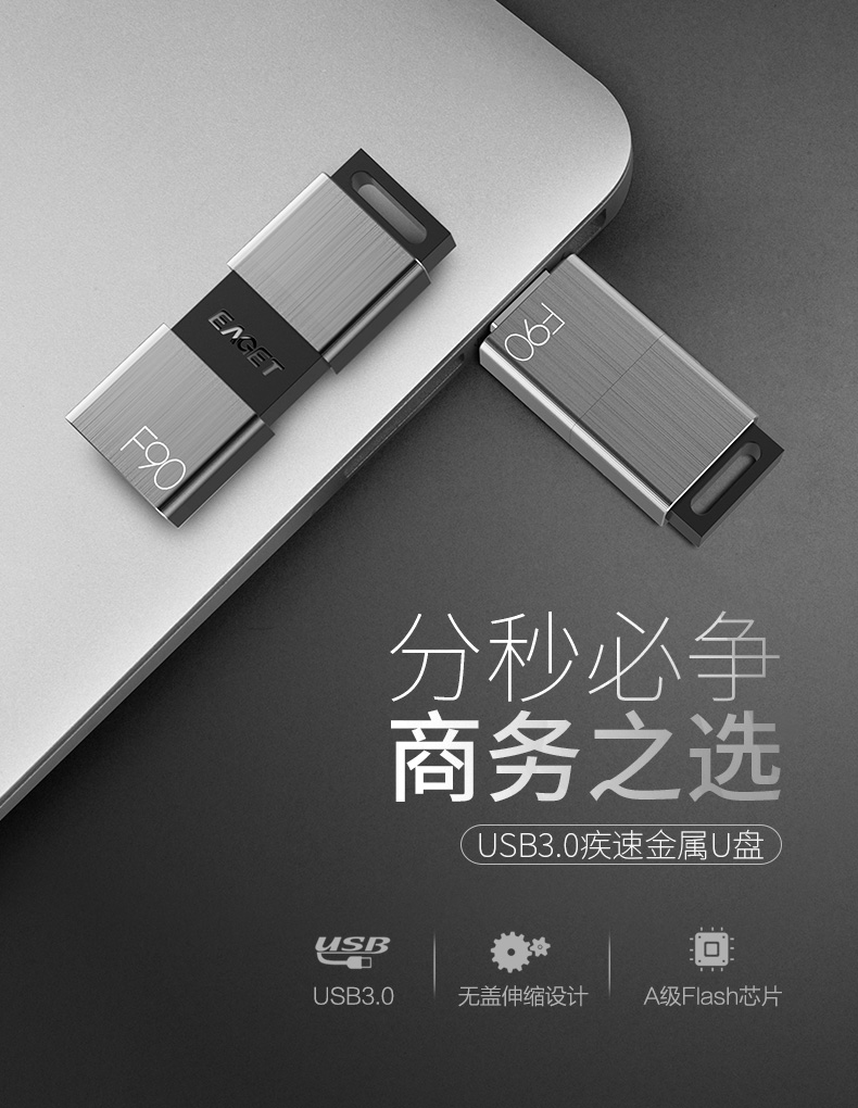 (EAGET)忆捷高速金属推拉式车载商务优盘F90-64G