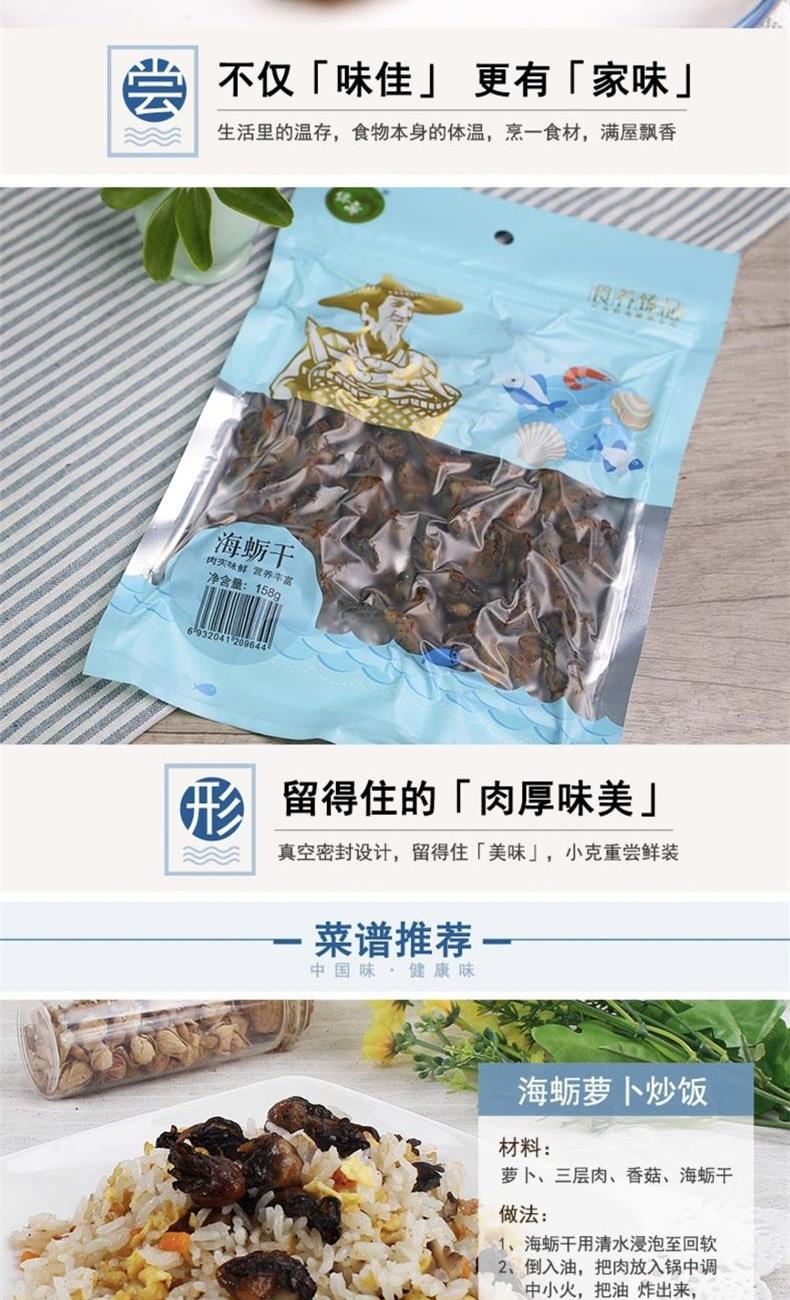 配料:蚝干(海蛎干) 原料产地:福建省漳州市 净含量:200克 保质期:10个月 生产日期:见包装物打印处 食用方法:浸泡回软洗净后,根煮菜、炒菜、煲汤等。 海蛎,学名牡蛎,又称海蛎子。海蛎干品味道鲜美,可烹饪出多种美食。