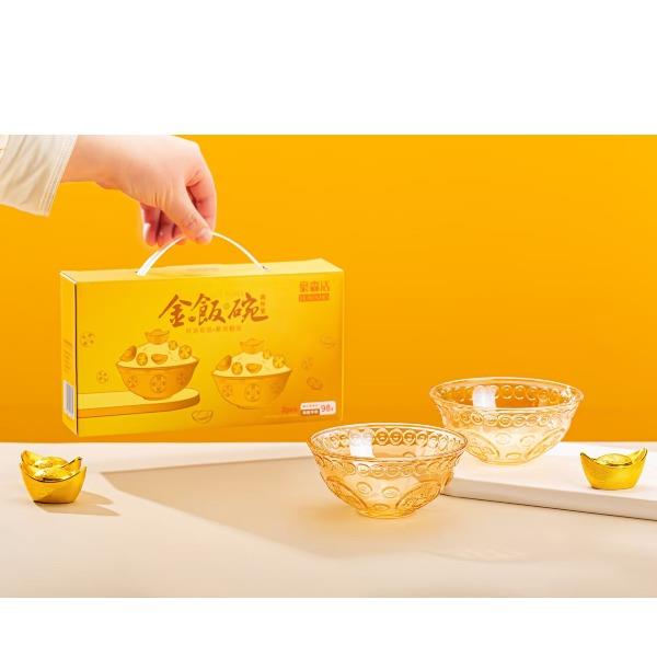货号:JFW-L2 规格:1*48套 金饭碗:口:12.2cm 底:4.5cm 高:5.5cm 彩盒尺寸:长22.4cm,宽5.8cm高12.8cm 外箱尺寸:50*47*40CM 条 码:6976254570641 产品卖点:“金饭碗”的寓意源于中国社会对职业稳定与生活保障的高度重视,是“铁饭碗”概念的升级版。它不仅承载着人们对理想工作的向往,也反映了特定的社会文化价值观。