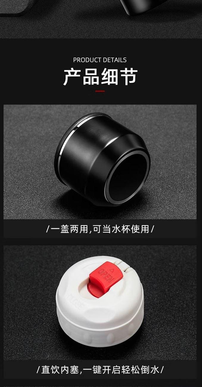 容量:630ml 颜色:白色 黑色 红色 蓝色 纯本色(304内胆) 尺寸:78*22.8 材质:304奥氏体不锈钢内胆、食品级PP,PC配件 包装:单瓦盒