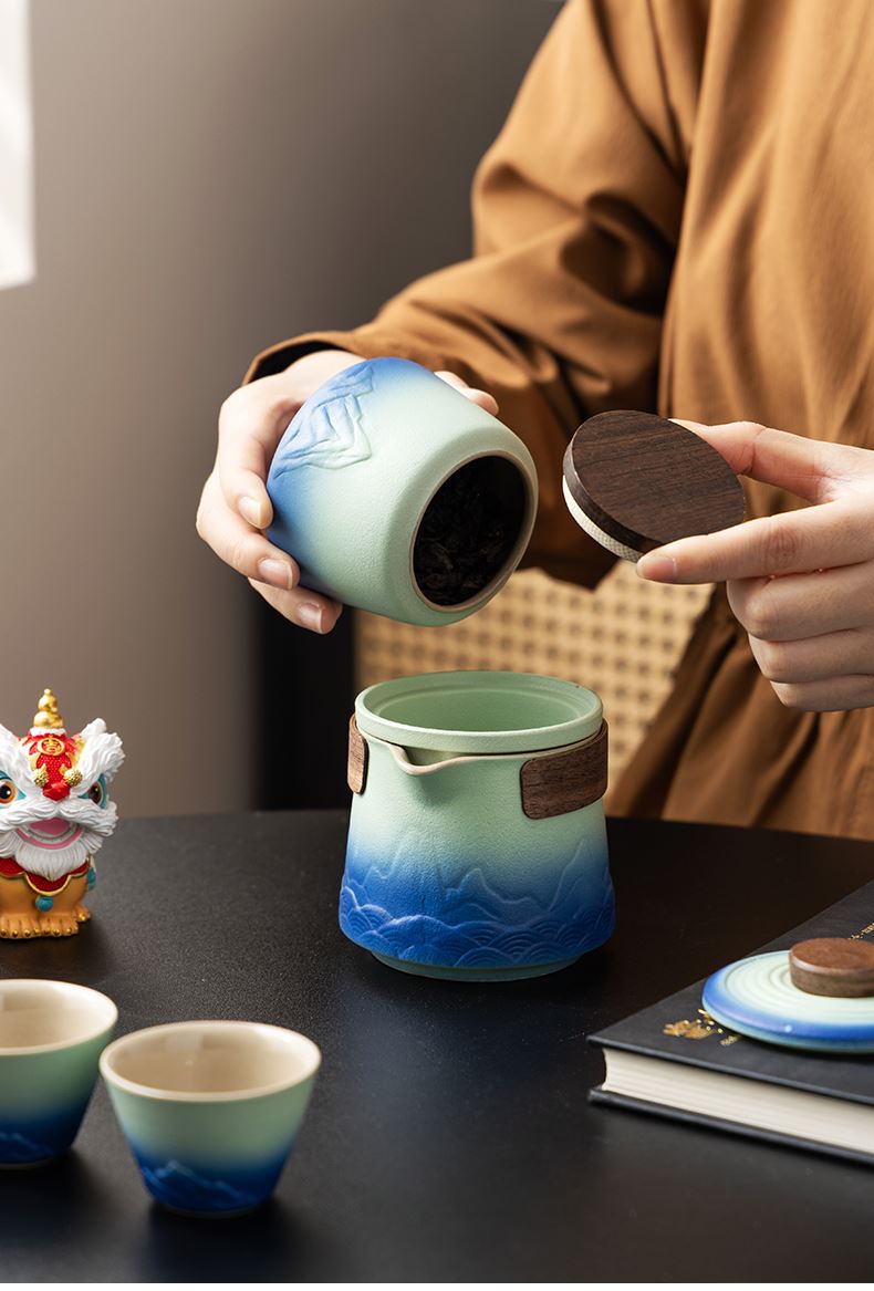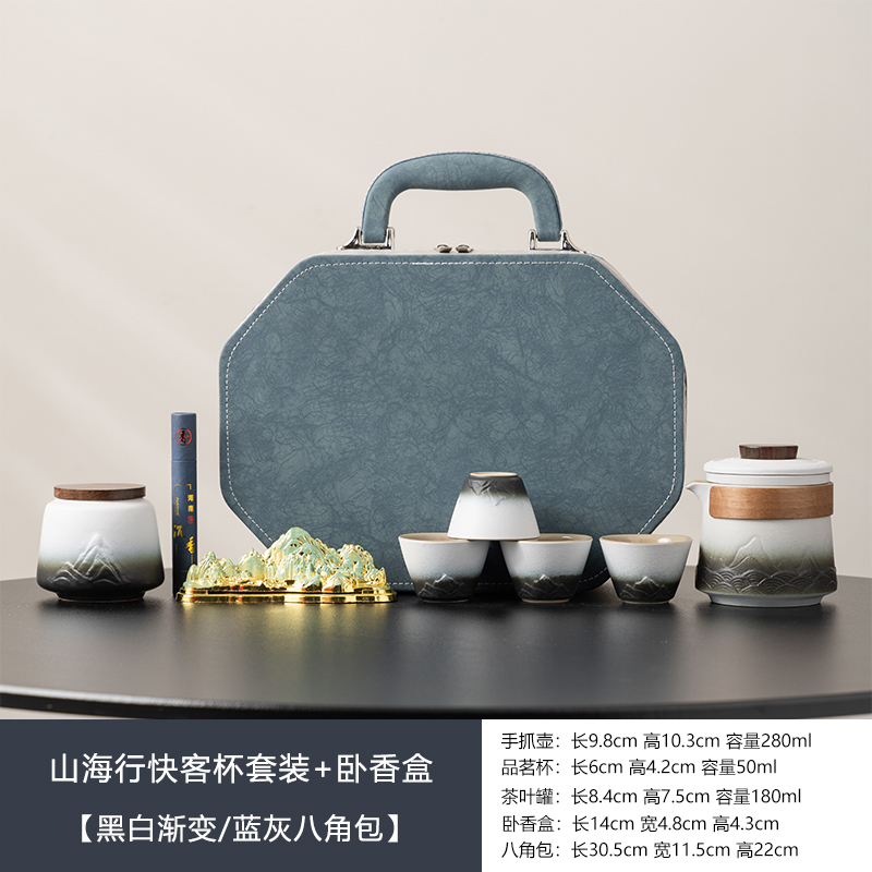 瓷语花香千里江山快客旅行茶具套装