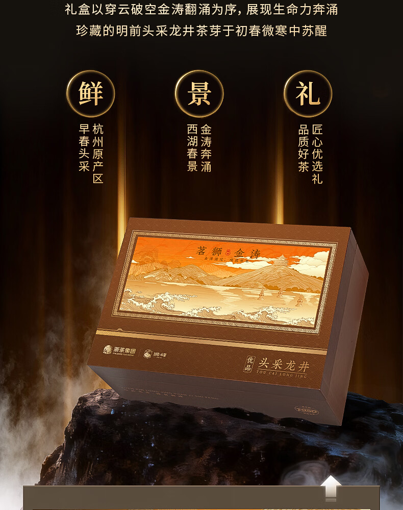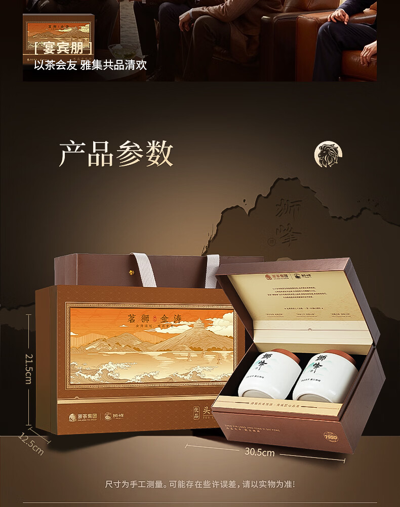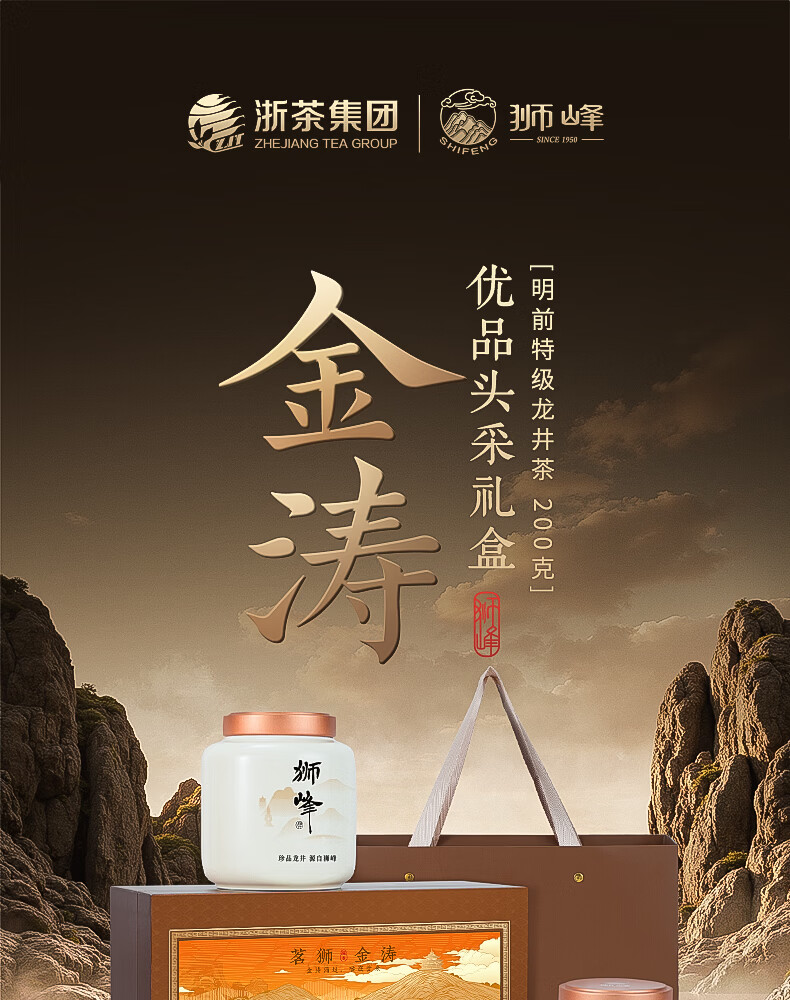 狮峰 商品编号:100018671838 储存方法:避光 密封 防潮 防异味 包装规格:1盒 保质期:12个月 采摘地:浙江 茶叶等级:特级 采摘时间:明前 采摘要求:一芽一叶 一芽两叶 包装形式:礼盒装 包装清单:礼盒*1、手提袋*1