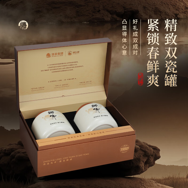 狮峰牌龙井茶礼盒茗狮醒春金涛200g