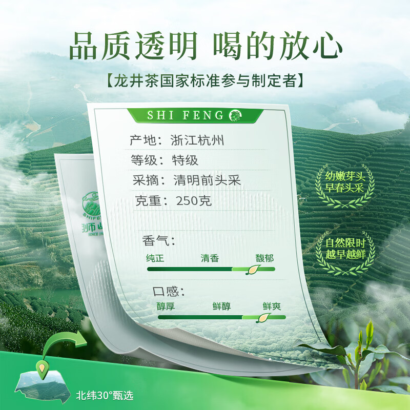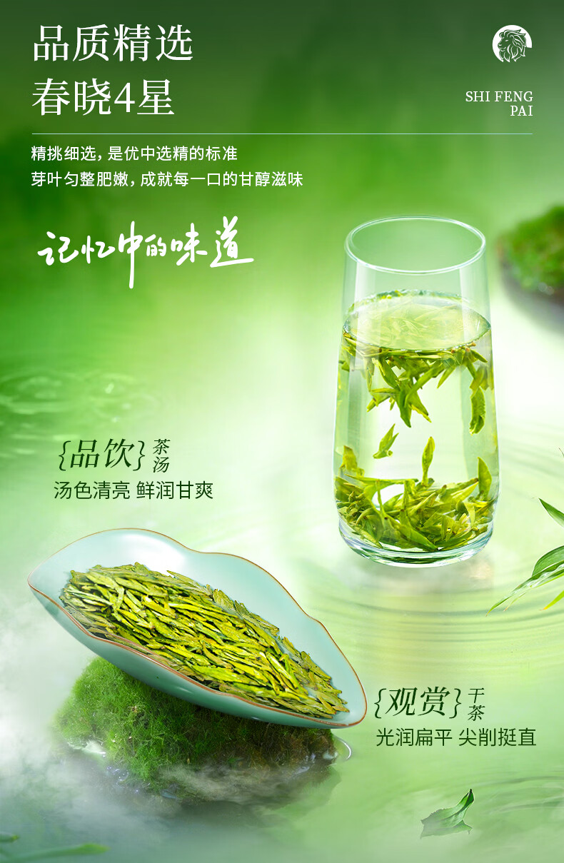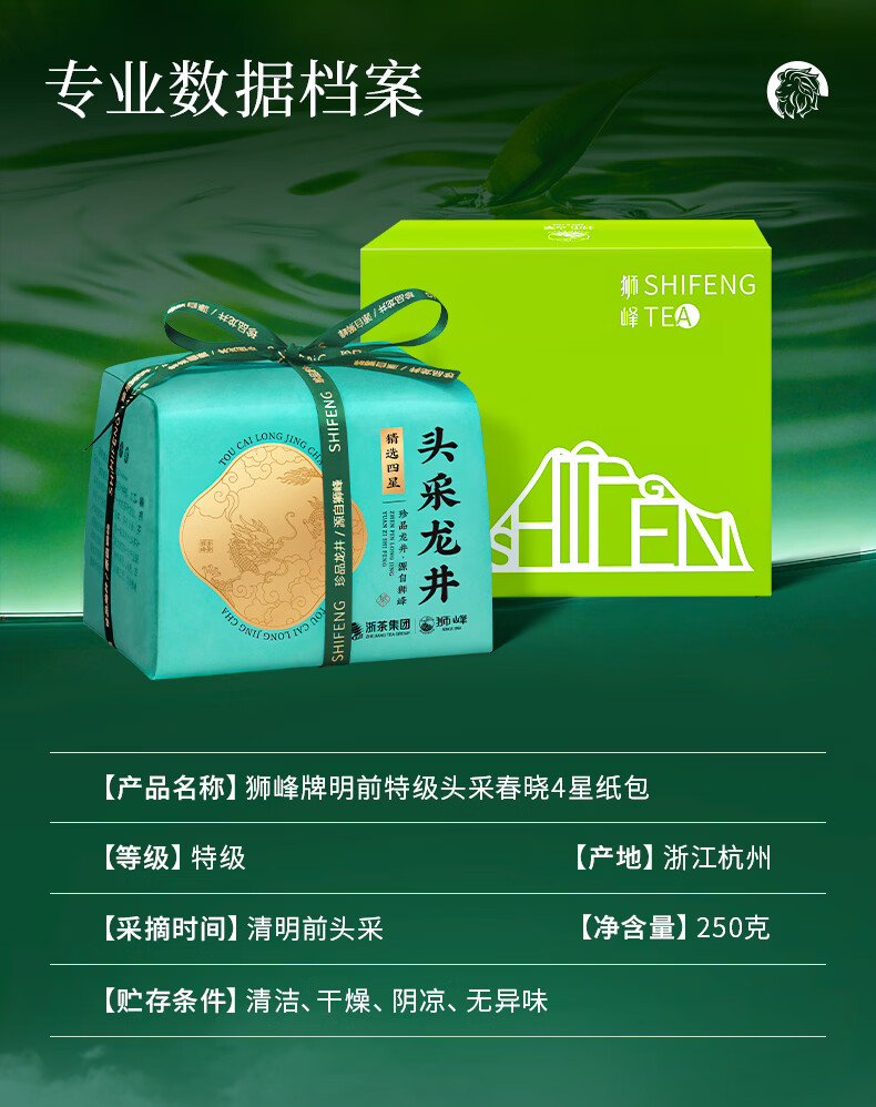 狮峰牌龙井茶纸包茗狮醒春4星250g