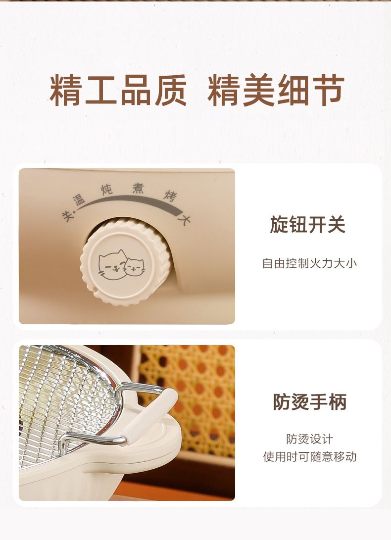 4、高功率,瞬间升温,不挑器具,贴心双耳把手,方便端拿