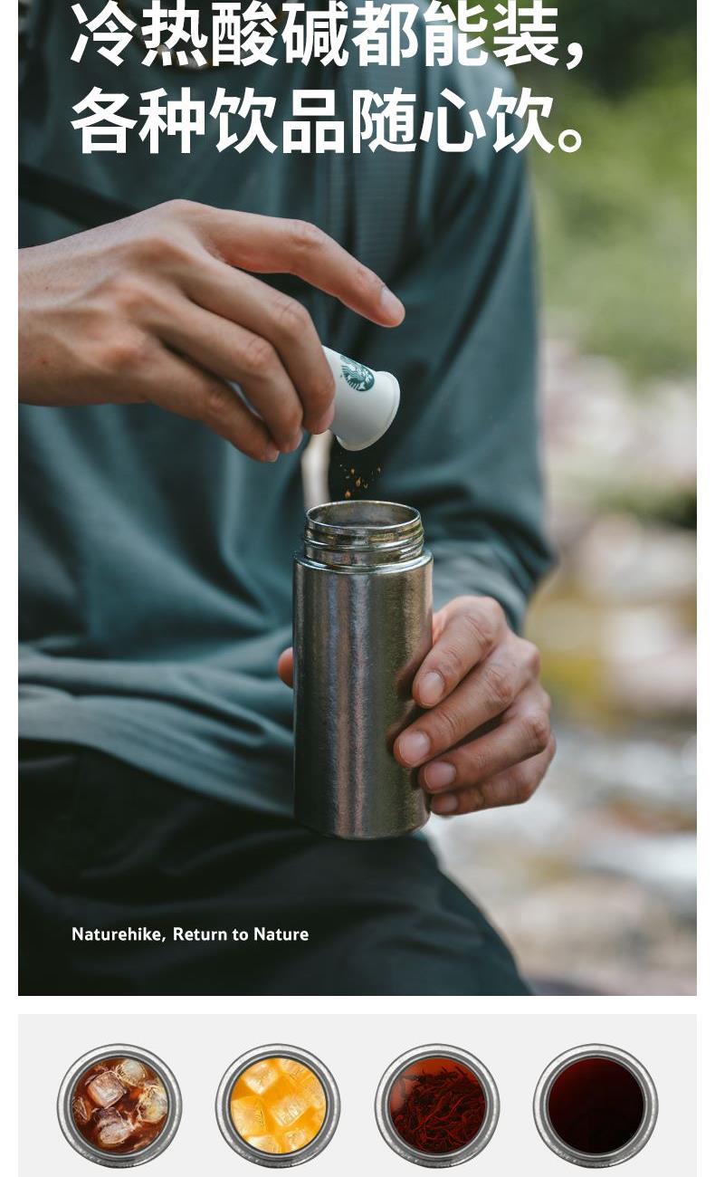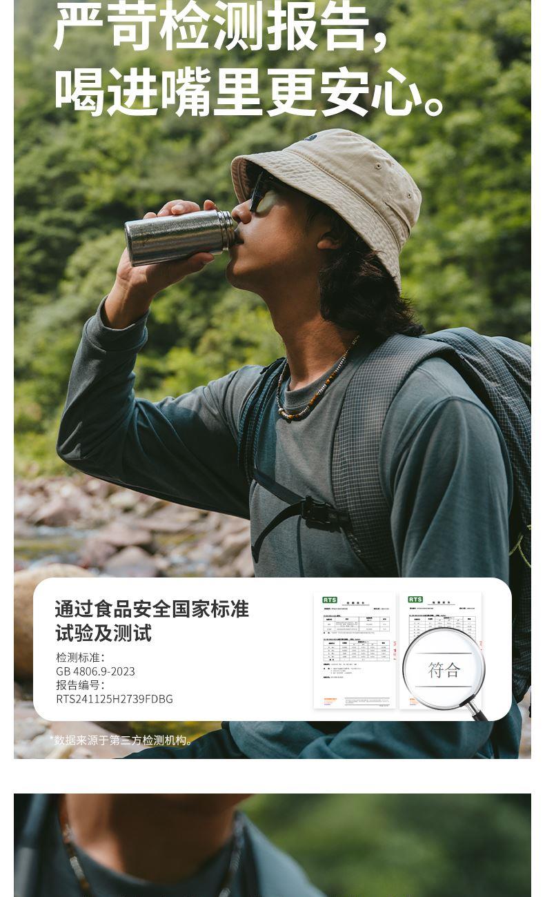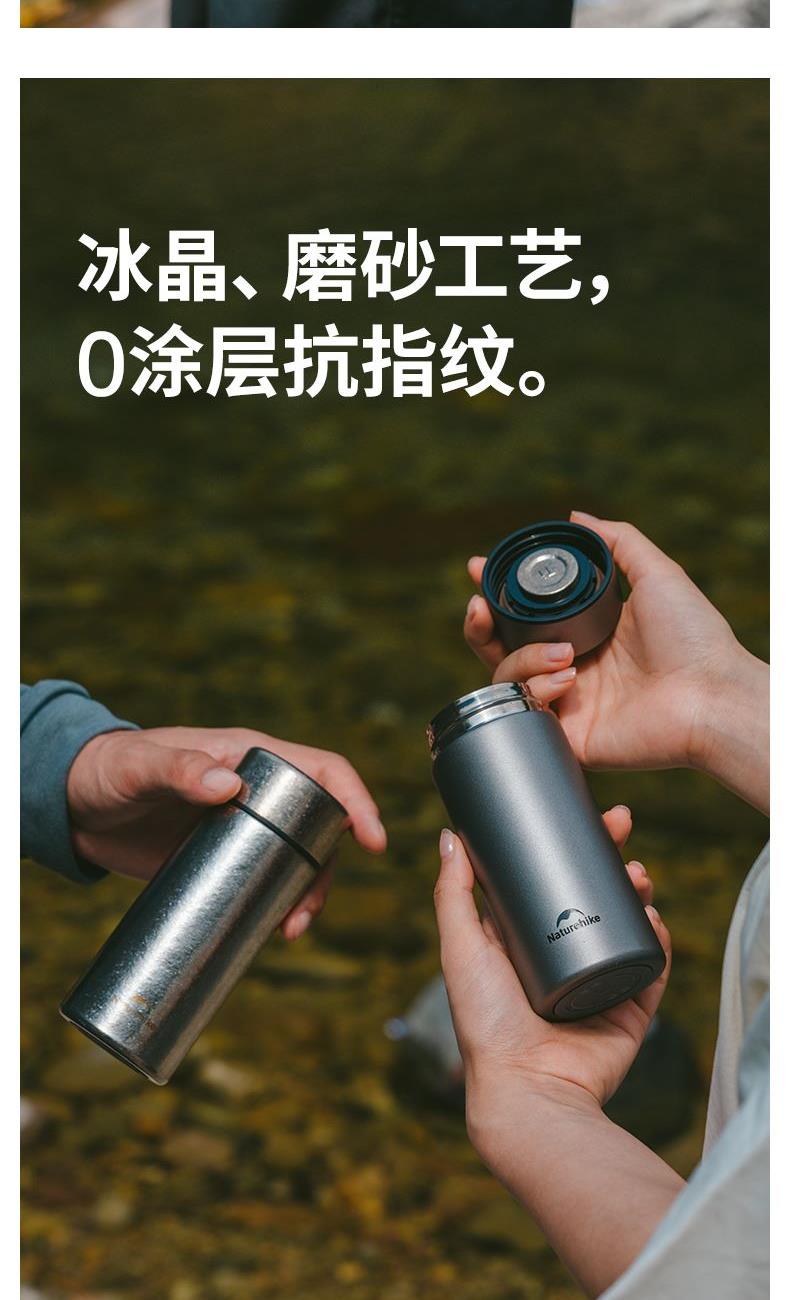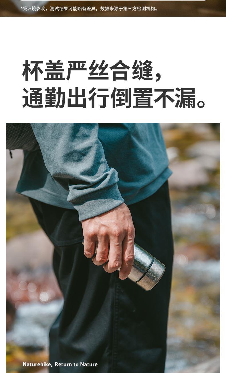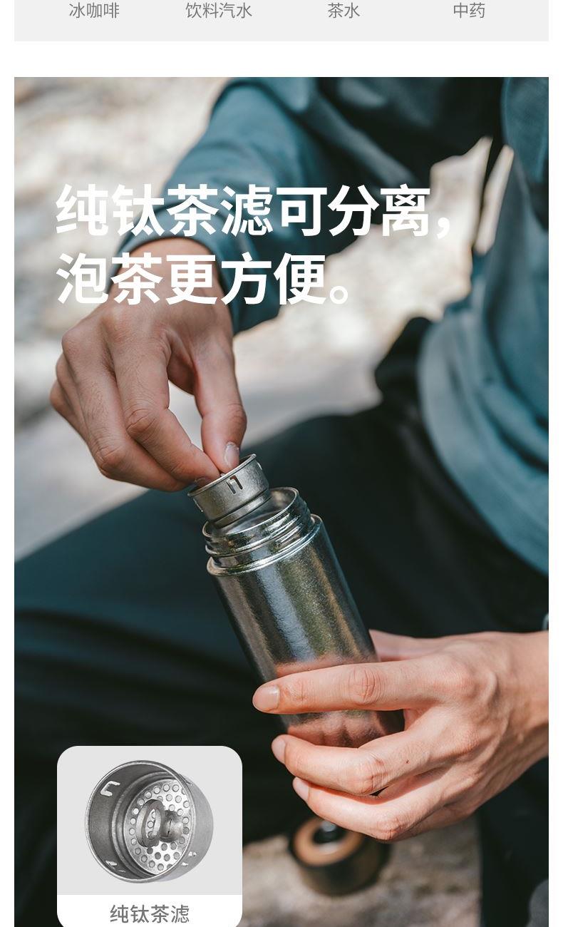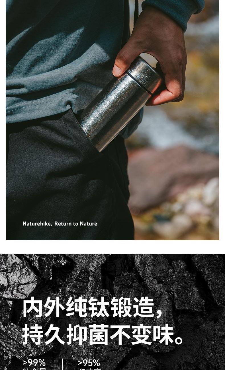 Naturehike CNK2550CF017 随行钛口袋杯 尺寸:φ5.7*14.5cm重量:约128g 颜色:冰晶灰 、玛雅灰材质:钛、PP、硅胶 容量:600ML 防水、防尘等级:IP66级 产品特点: 轻至128g,减负超轻入袋随行 内外纯钛锻造,持久不变味 冷热酸碱都能装,各种饮品随心饮 纯钛茶滤可分离,泡茶更方便 一杯可两用,保温保冷6小时