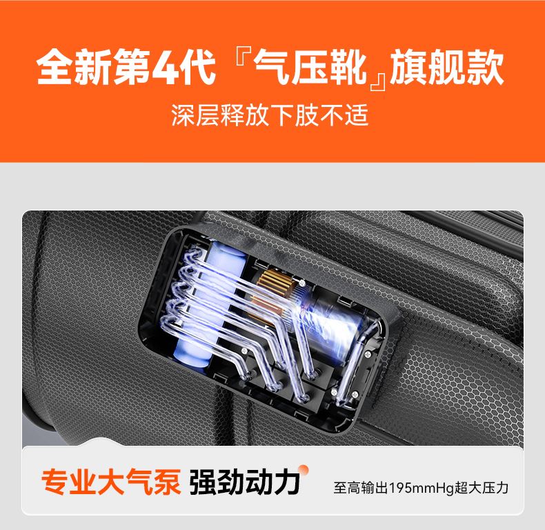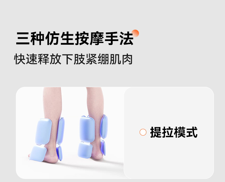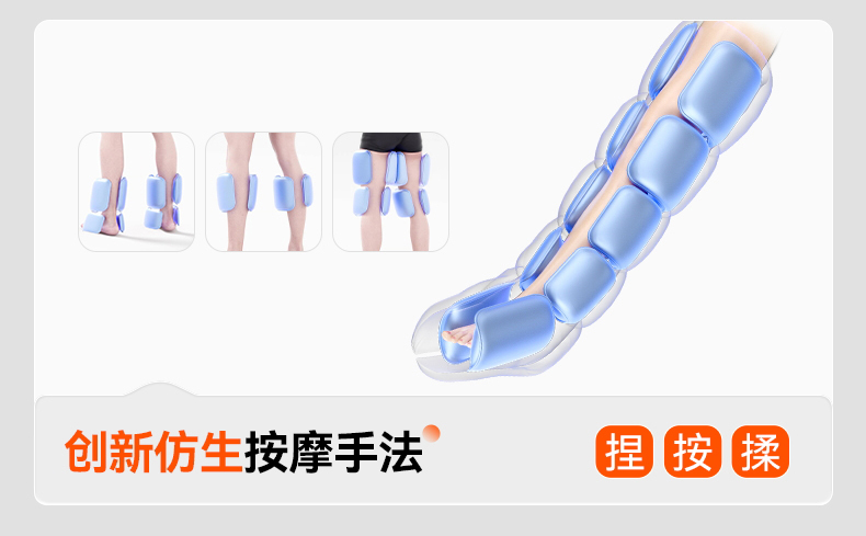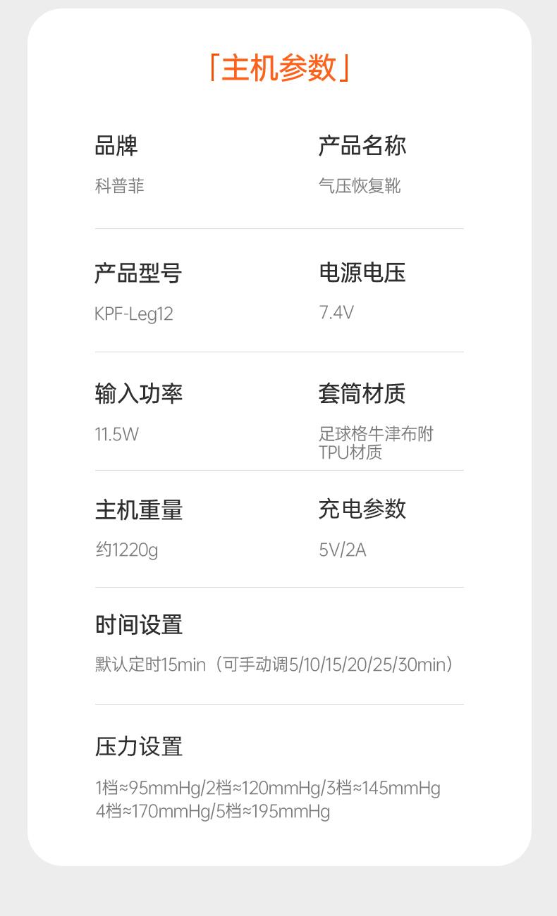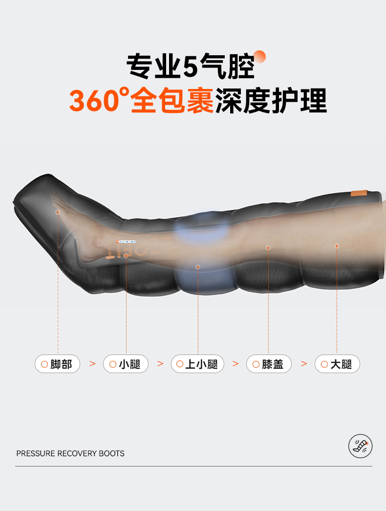 单只装,分左右腿的 【按摩深度】自研250mmHg超强压力,深一度,爽十倍 【智能压力】内置智能压力传感器,粗腿细腿都能感受相同的按摩效果 【五腔六阀】独立气囊设计,按摩位置可控,想按哪里就按哪里 【超长续航】4400mAh大容量电池,持久续航