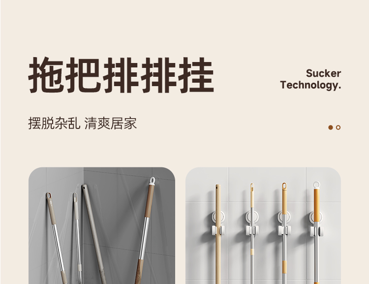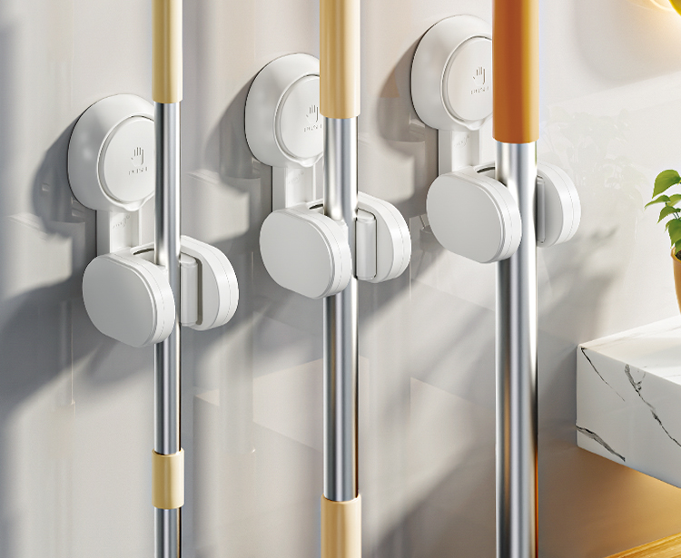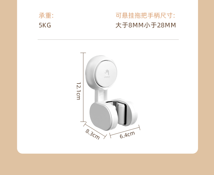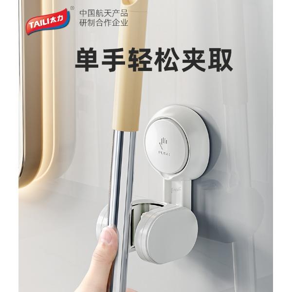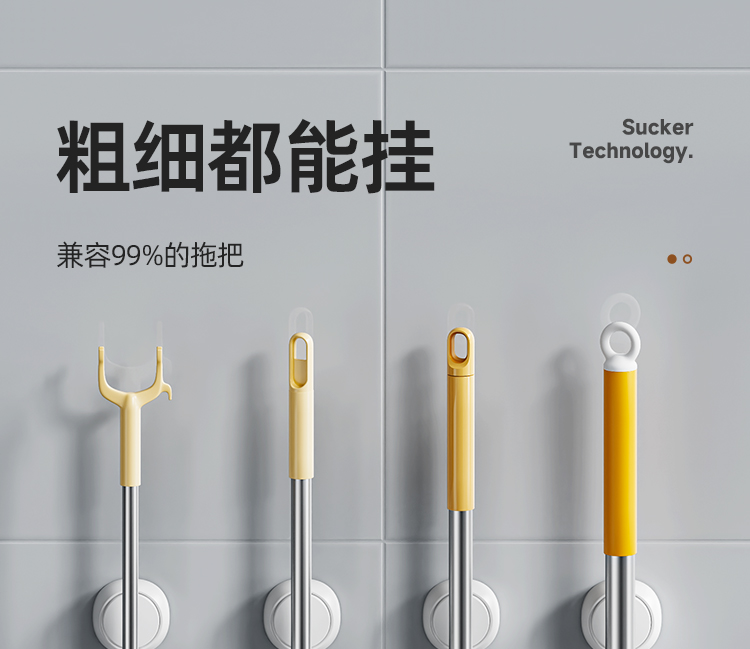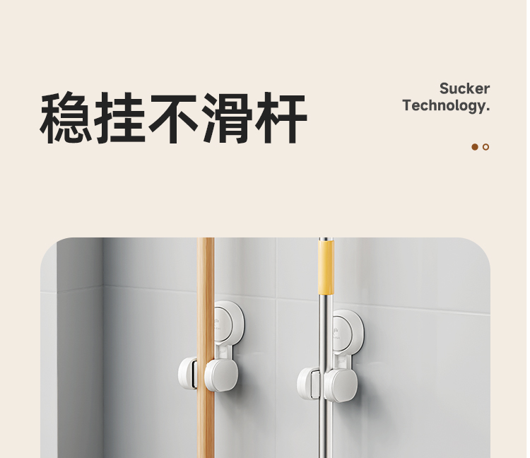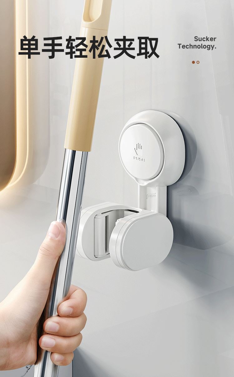 产品尺寸:6.4*8.3*12.1cm(2个) 主体材质:塑料,真空吸盘TPE 安装方式:吸盘壁挂式 适用对象:拖把 适用墙面:光滑瓷砖,光滑玻璃,人工大理石,亚克力板 类别:挂钩 适用场景:卫生间 图案:纯色 功能:易操作,防水,真空吸附, 产品描述:环保新升级,免粘胶,循环用,真空吸附可移动,浴室使用防水,安装简单。