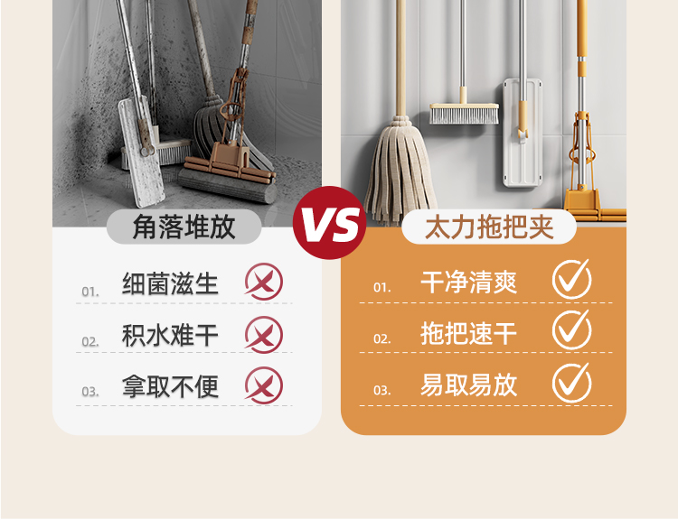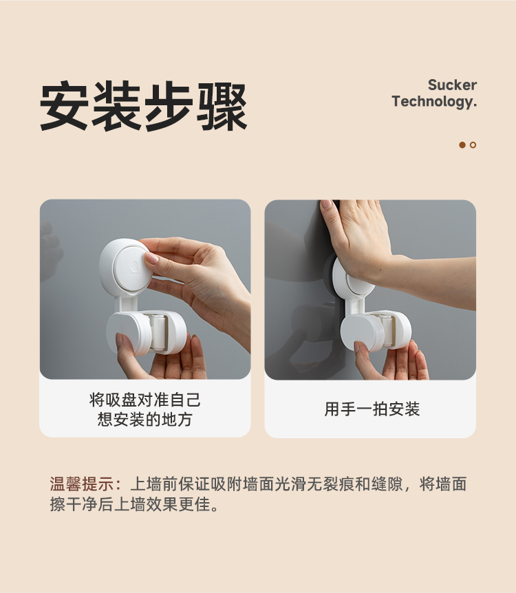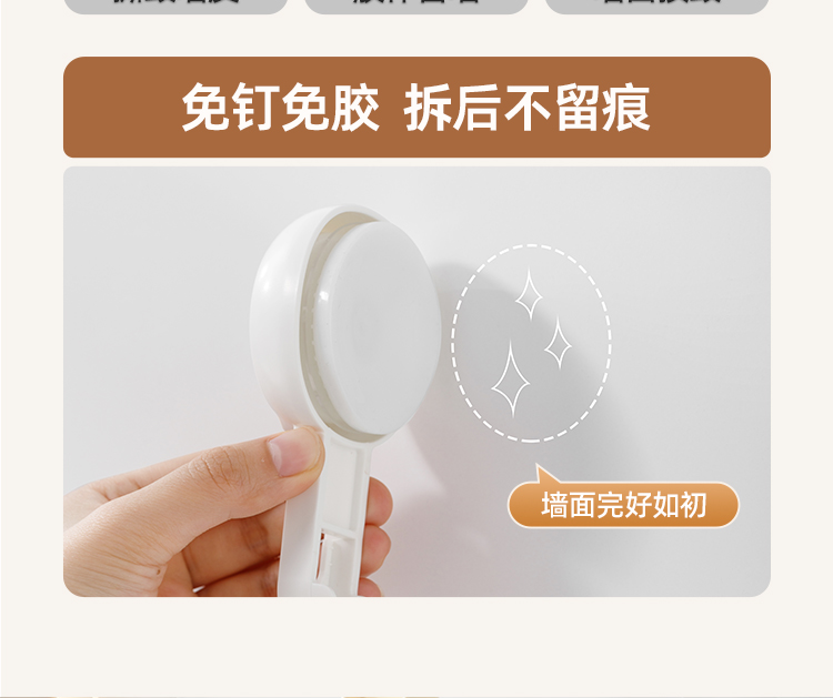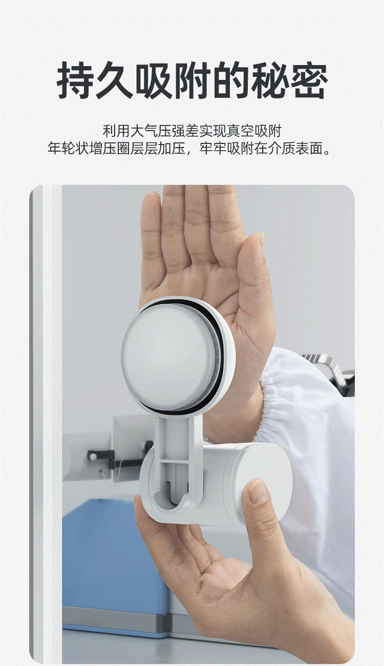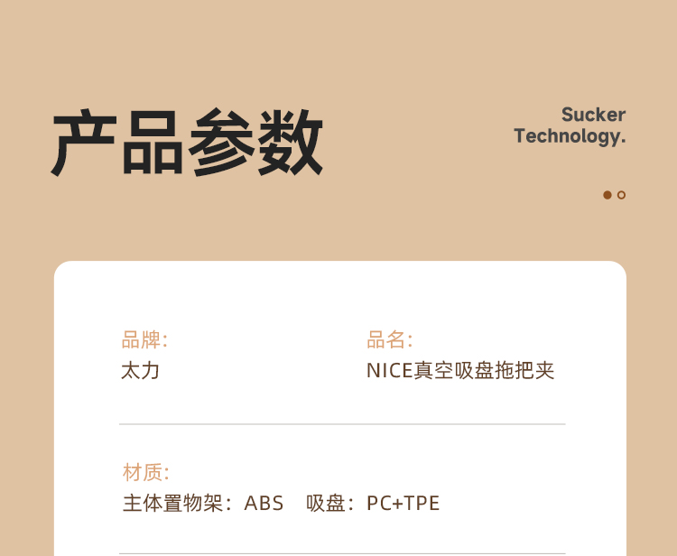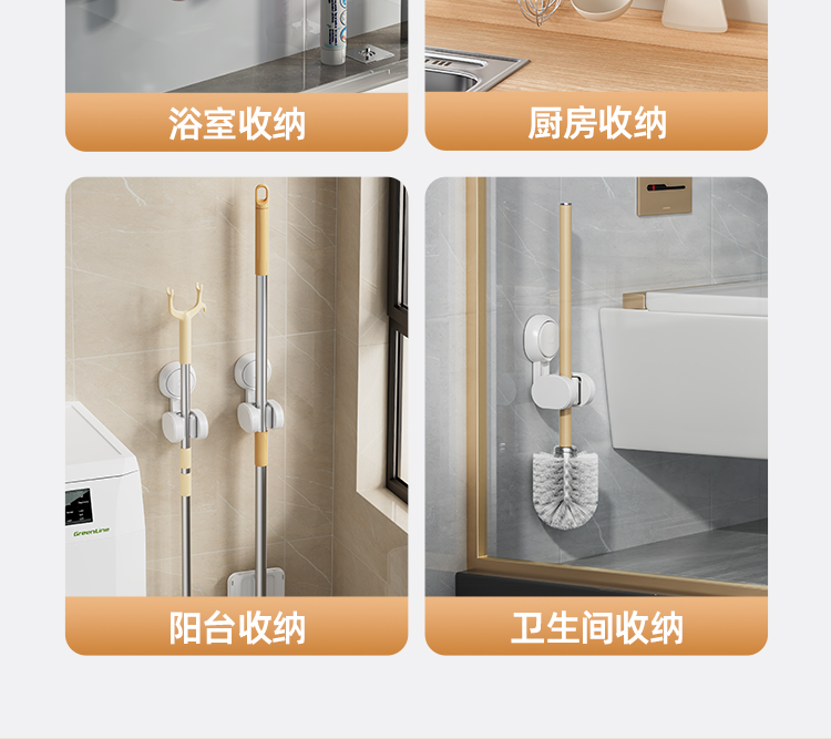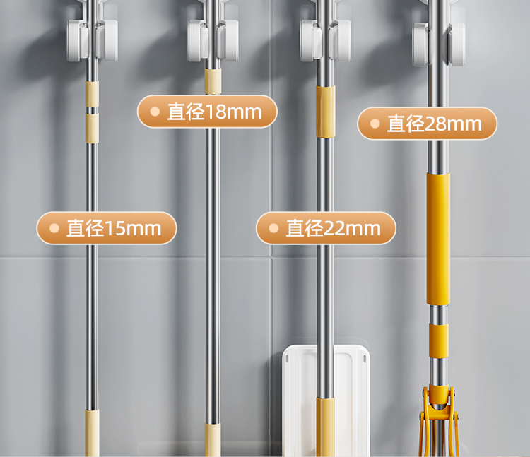 产品尺寸:6.4*8.3*12.1cm(2个) 主体材质:塑料,真空吸盘TPE 安装方式:吸盘壁挂式 适用对象:拖把 适用墙面:光滑瓷砖,光滑玻璃,人工大理石,亚克力板 类别:挂钩 适用场景:卫生间 图案:纯色 功能:易操作,防水,真空吸附, 产品描述:环保新升级,免粘胶,循环用,真空吸附可移动,浴室使用防水,安装简单。