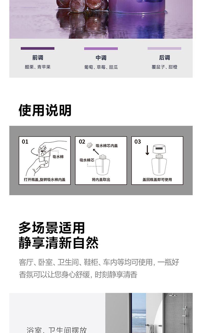 产品规格:400ml/瓶 三种香型:多肉葡萄 铃兰栀子 青柠西柚 主要原料:界面活性剂、香精、消臭剂 保质期:3年