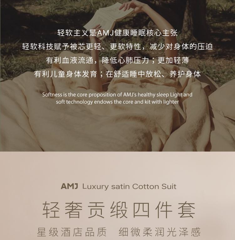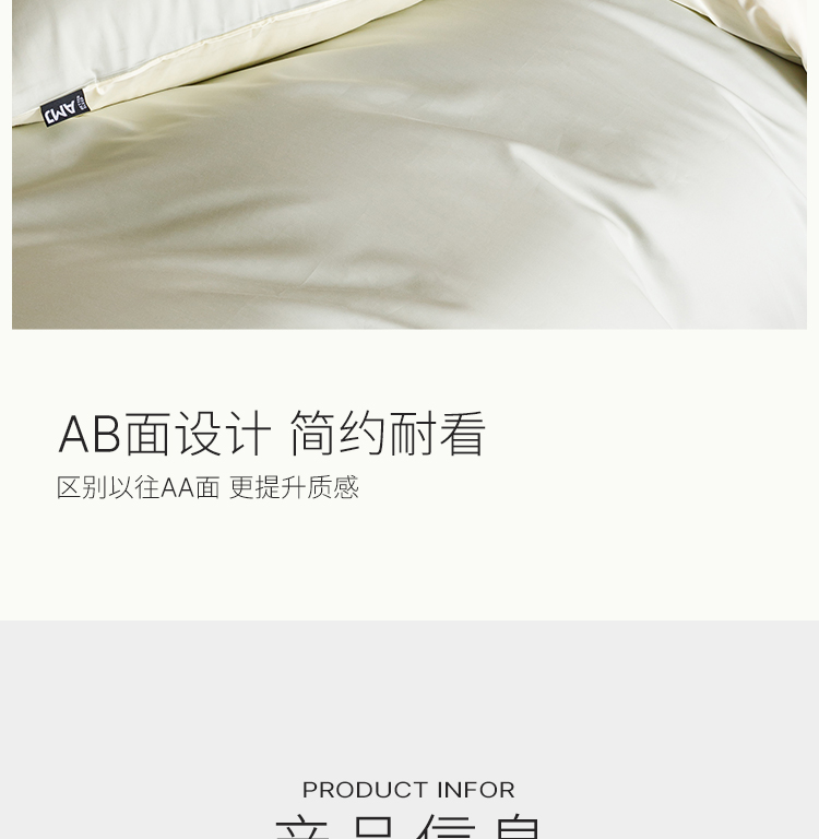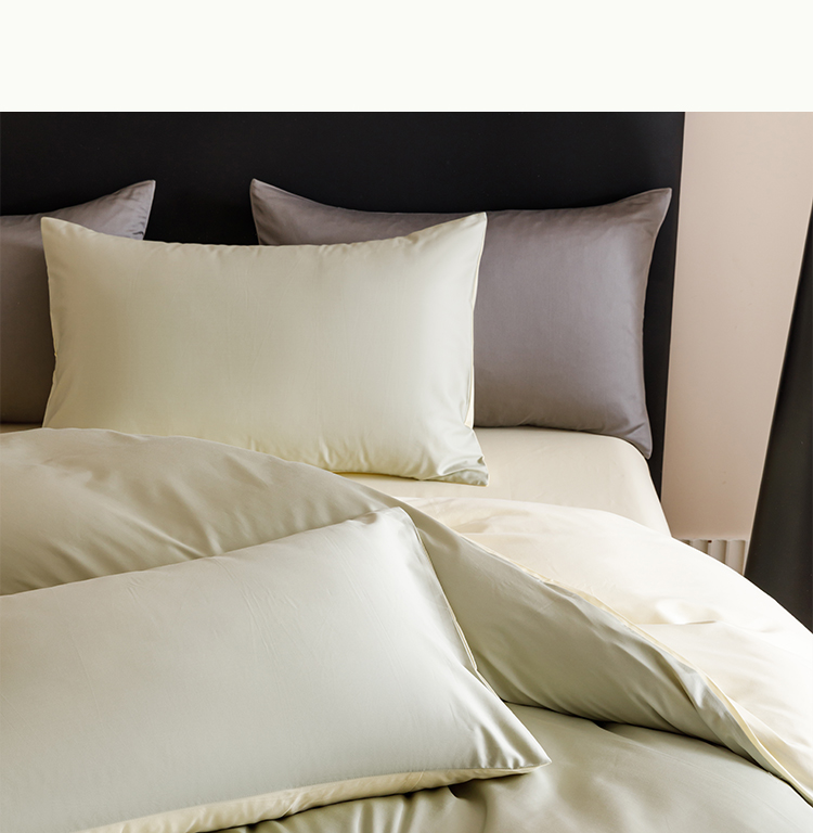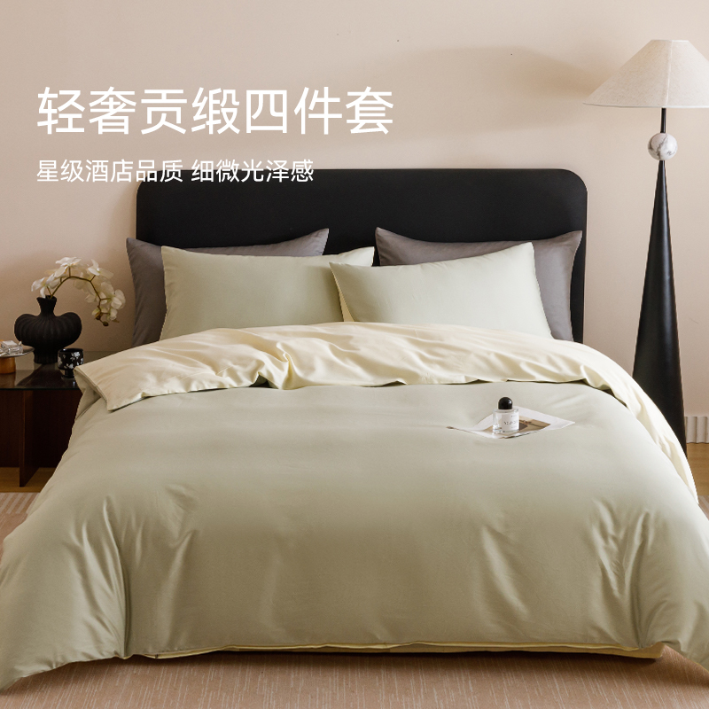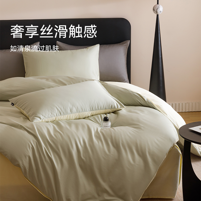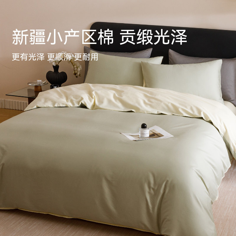 全棉60s套件,精选新疆长绒棉,每朵棉花充足日照3100小时,纤维柔长,洁白硕大,质感更柔软,更亲肤,韧性更强。贡缎工艺织造,赋予面料丝滑质地,触肤丝滑光滑,更加贴身。采用丝光工艺处理,细腻亲肤。如真丝般温润光感,见证被感知的细腻,让一个纯棉的套件在光的照亮下,泛出金属的光泽度。经典双拼色,点亮视觉美感。