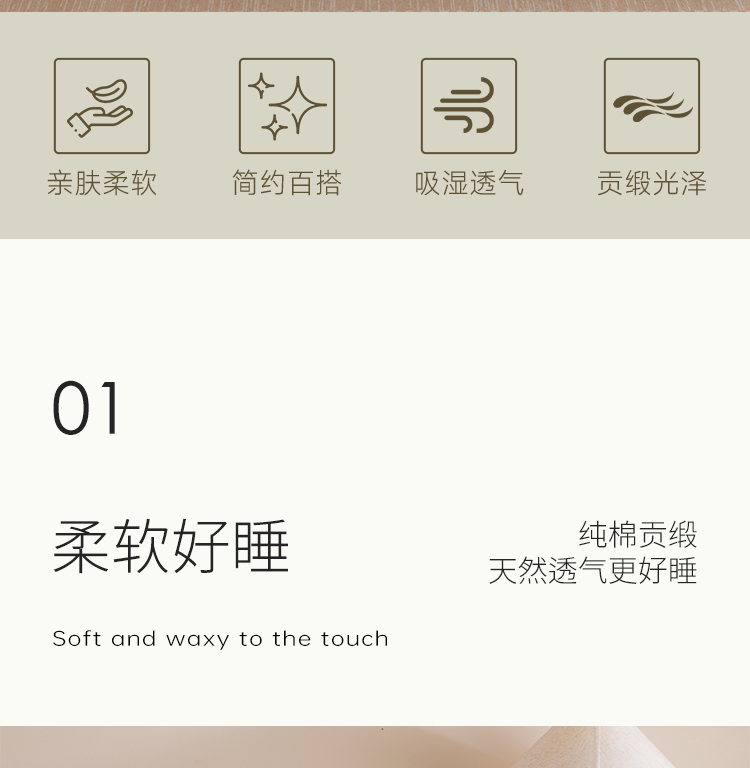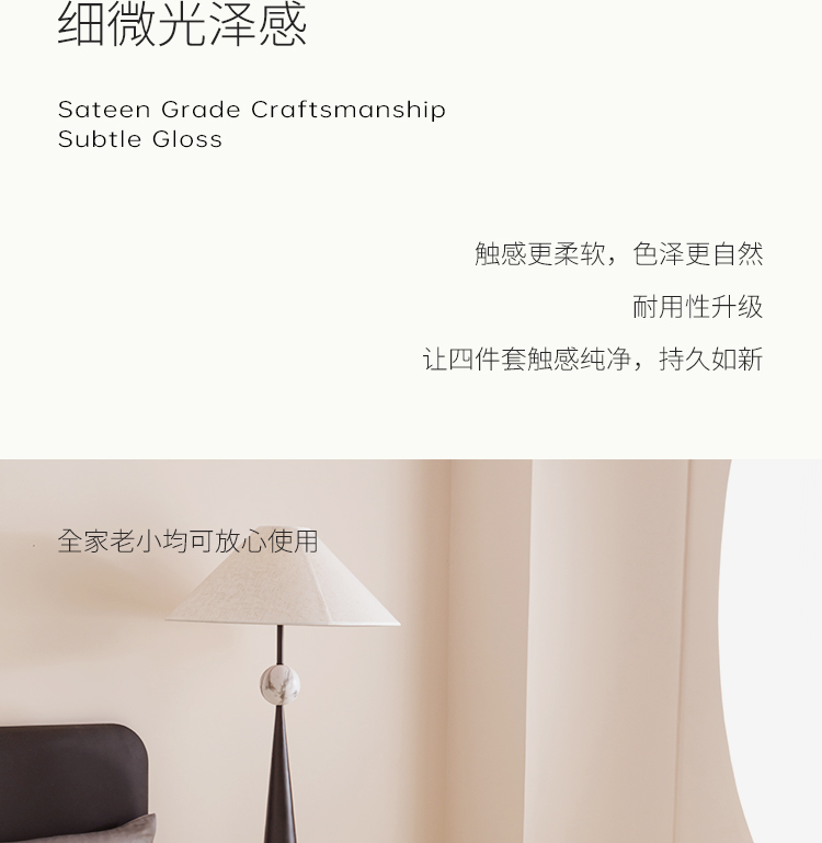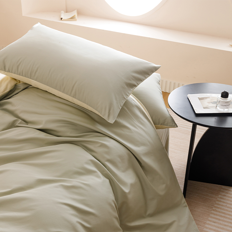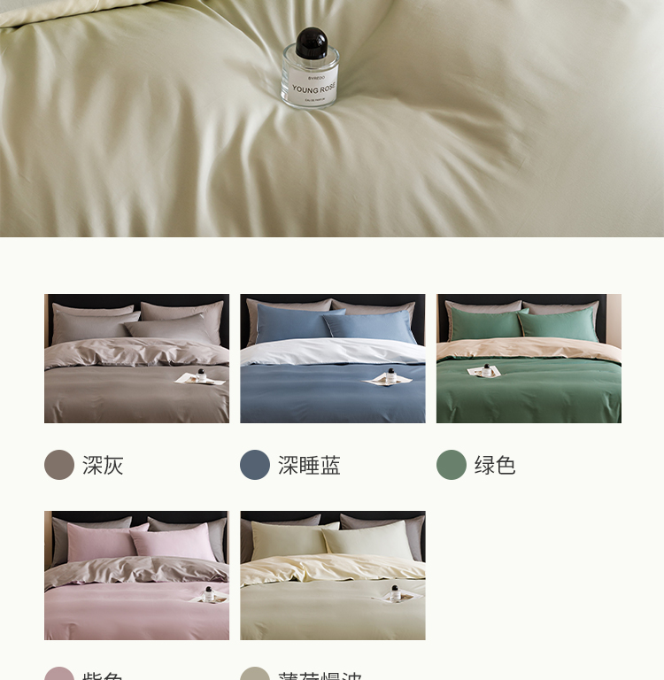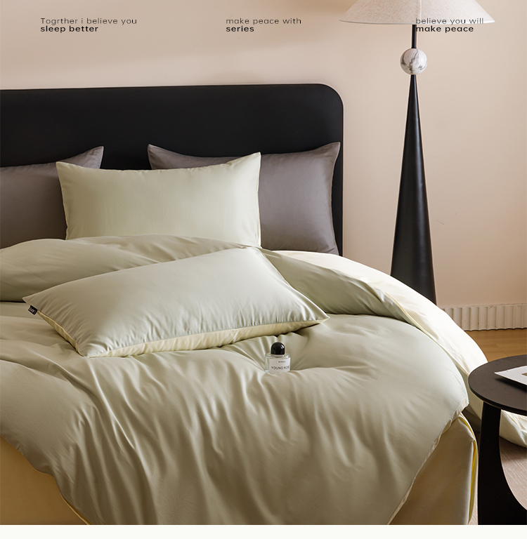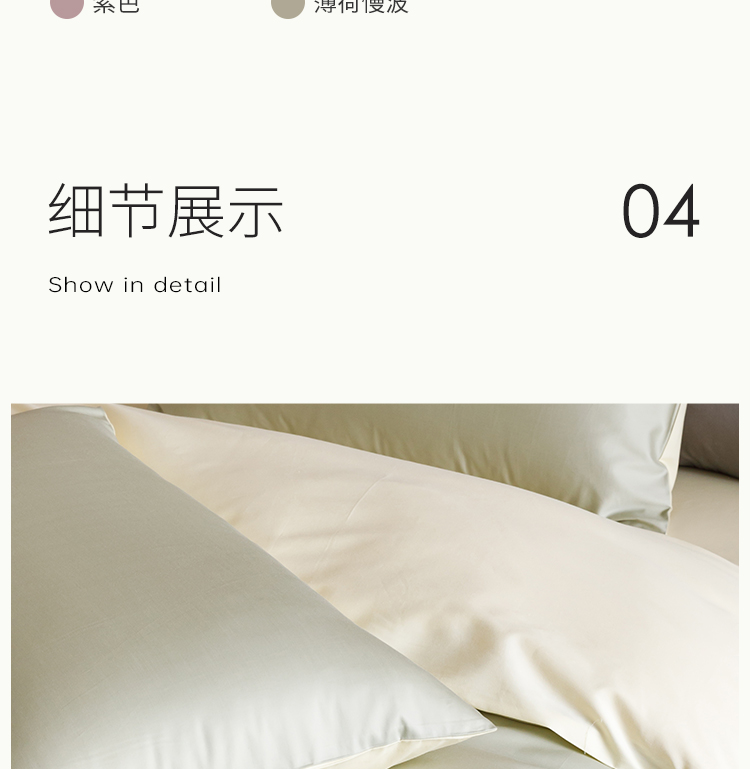 全棉60s套件,精选新疆长绒棉,每朵棉花充足日照3100小时,纤维柔长,洁白硕大,质感更柔软,更亲肤,韧性更强。贡缎工艺织造,赋予面料丝滑质地,触肤丝滑光滑,更加贴身。采用丝光工艺处理,细腻亲肤。如真丝般温润光感,见证被感知的细腻,让一个纯棉的套件在光的照亮下,泛出金属的光泽度。经典双拼色,点亮视觉美感。
