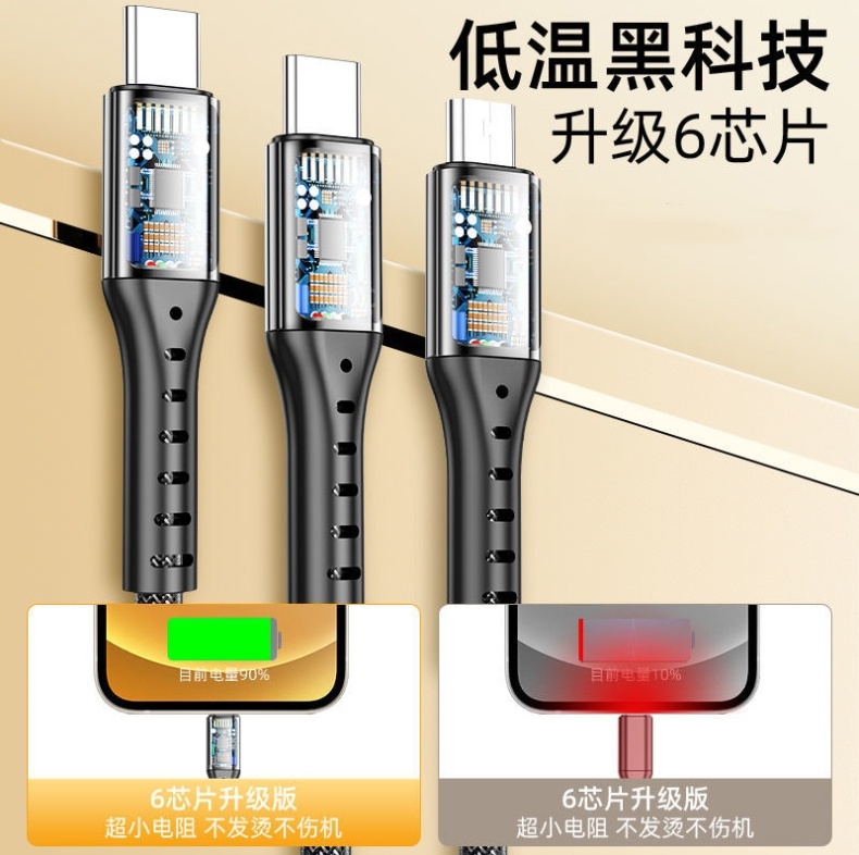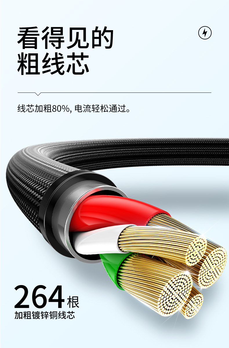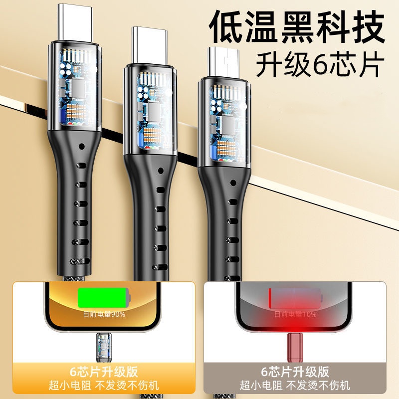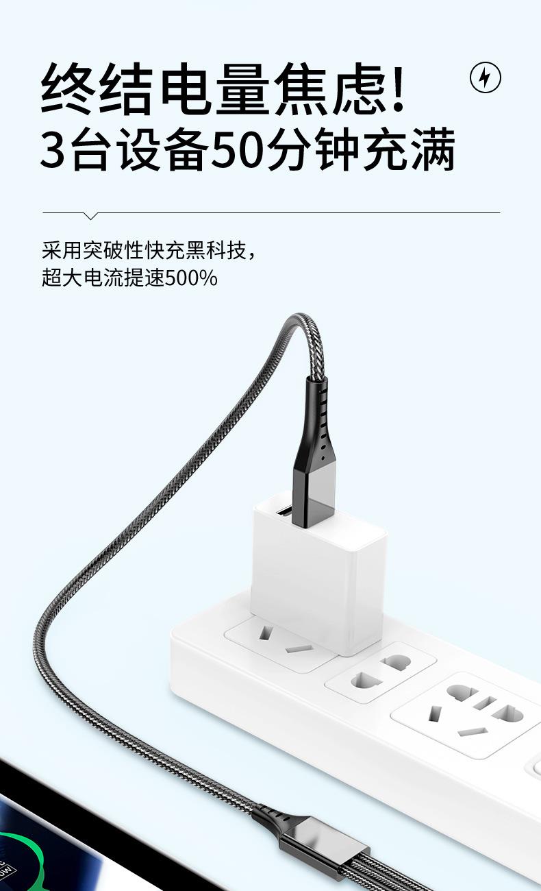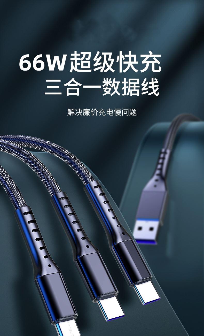 长度:1.2M 电流:6A 材质:TPE/ABS/尼龙编织/铝合金 功能:TYPE-C支持66W快充 适用:TYPE-C/苹果/安卓 颜色:红色 蓝色 黑色 产品重量:46g 产品包装尺寸:140*90*27mm(彩盒) 产品卖点:Type-c接口支持快充,编织尼龙+TPE环保材质,防缠绕,耐拉伸,经久耐用,加固接头,广泛兼容,适用市面绝大多数手机。