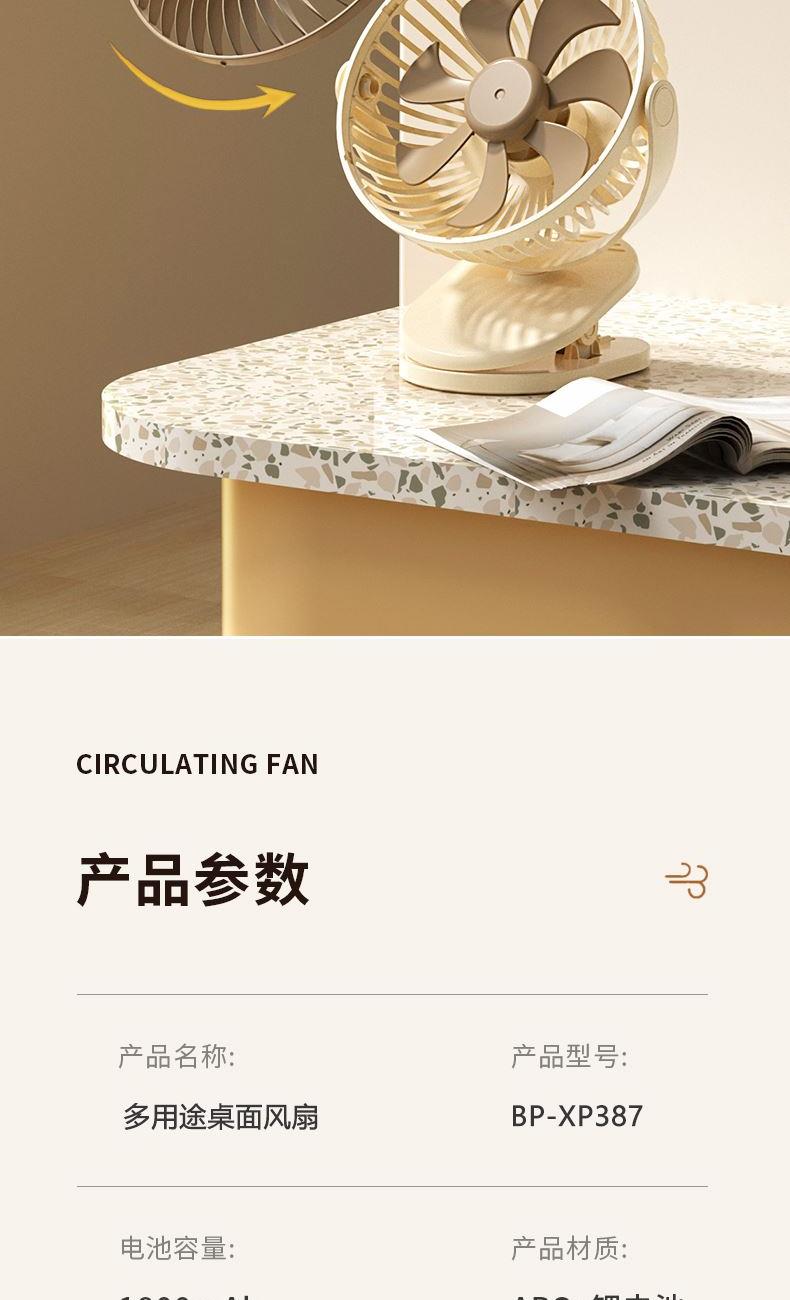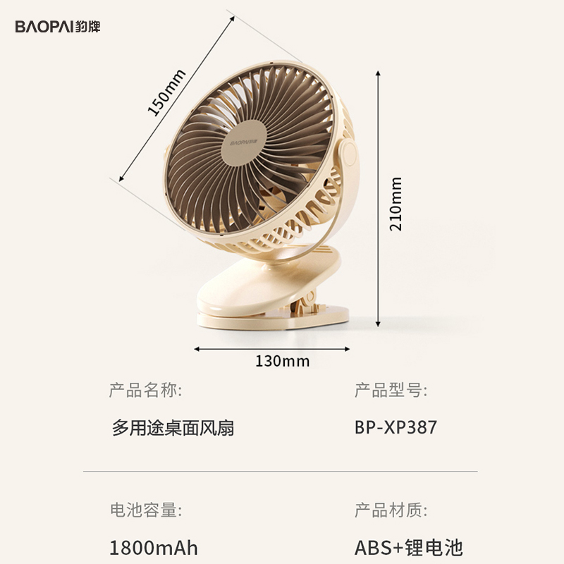 豹牌多用途桌面风扇BP-XP387(充电款)
