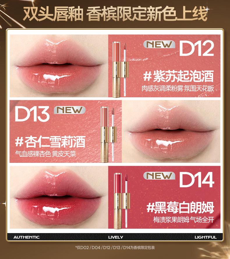 蜜丝婷微醺持色双头唇釉D14黑莓白朗姆【香槟限定】