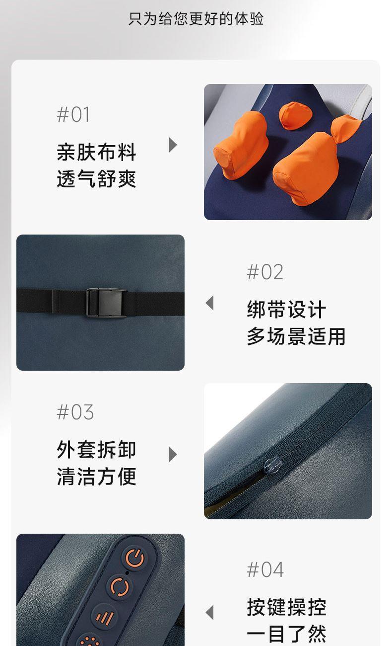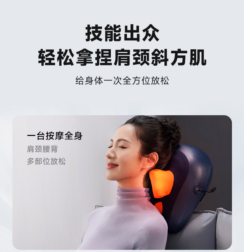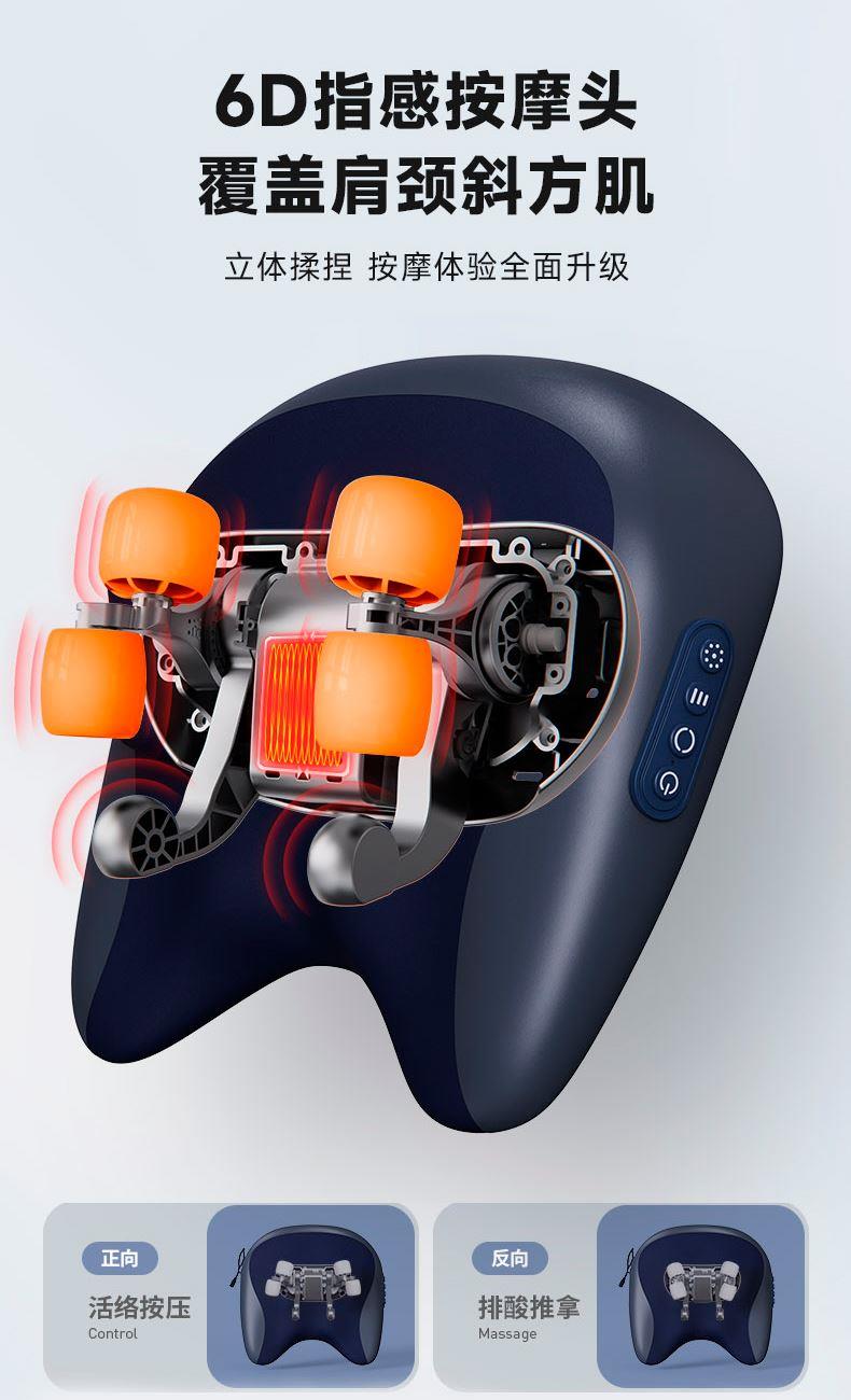 额定输入:DC5V 额定功率:10W 电池容量:2000mAh 产品净重:1.51kg 产品颜色:深蓝 你的专属按摩师,按摩斜方肌 加宽加大按摩手,仿人手揉捏 不只揉捏肩颈,按摩腰背同样给力 大面积热敷,边按边加热,筋骨更放松