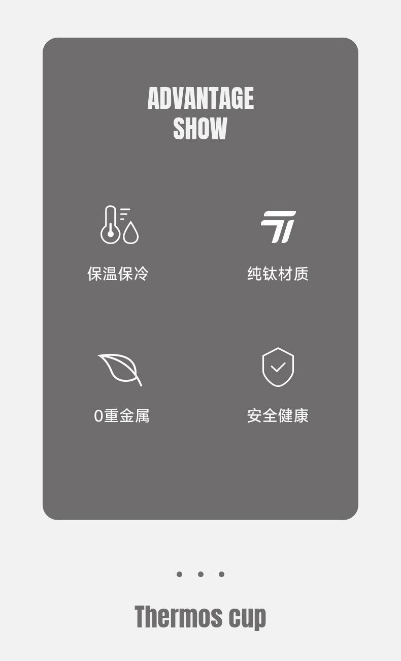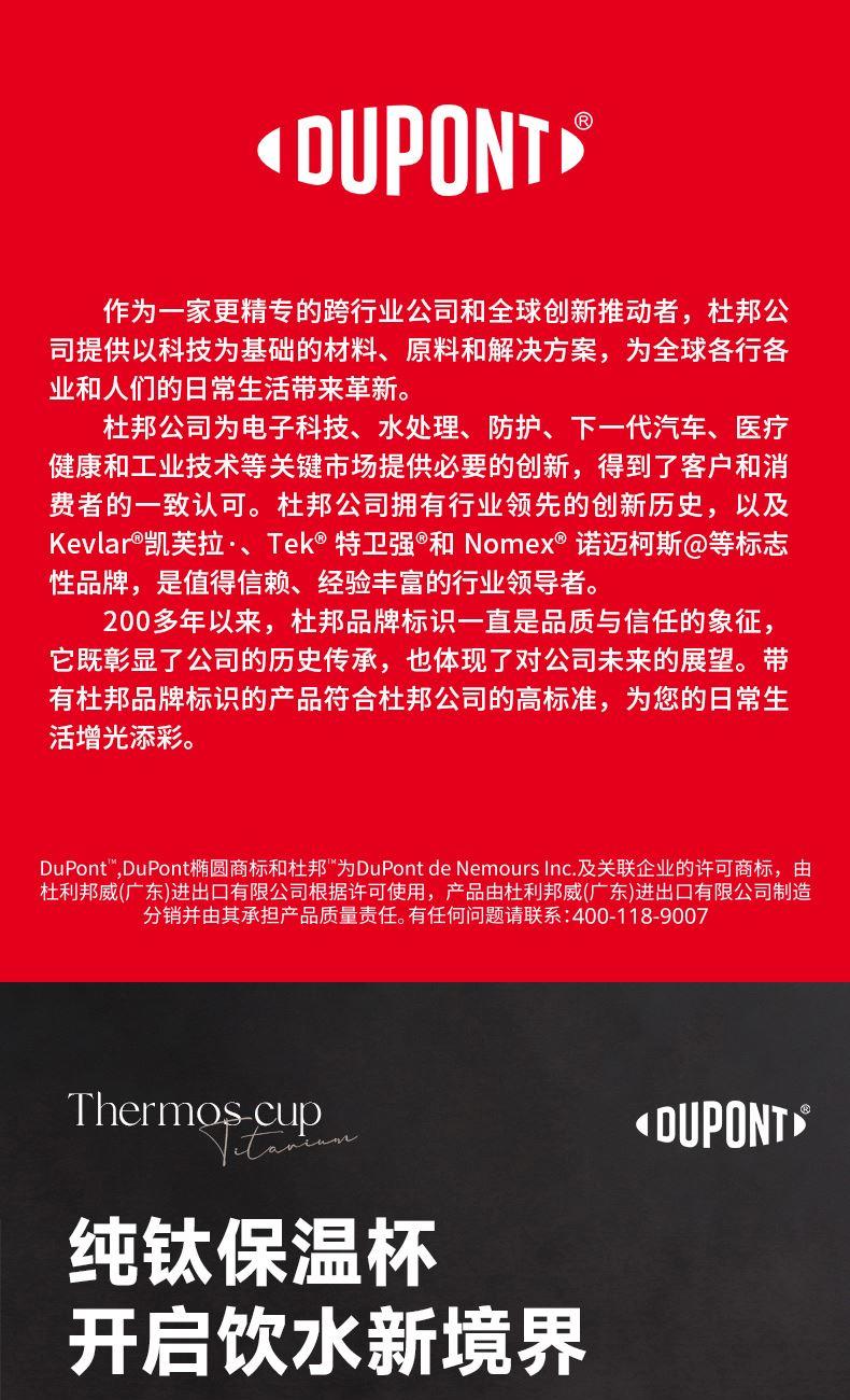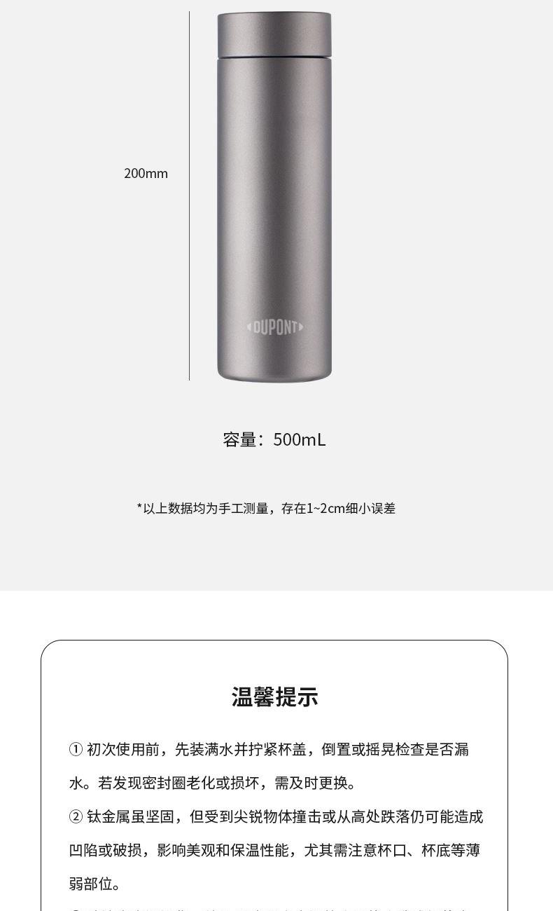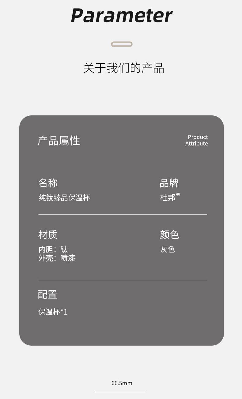 杜邦纯钛臻品保温杯PTB-002灰色500ml