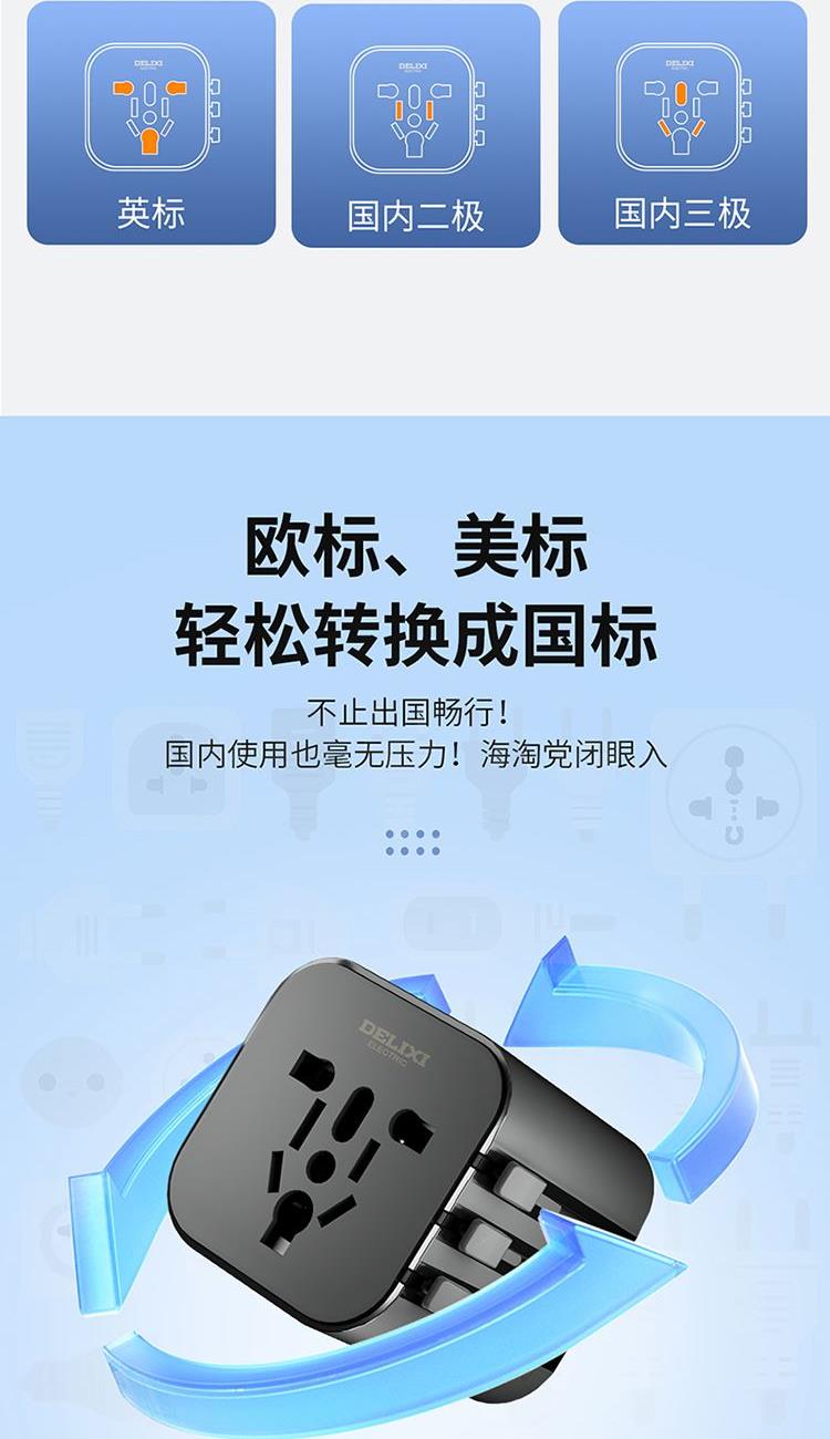 产品:德力西电气全球通旅行插座 基础款 粉色 产品型号:CD98-SPQ(HE)Q (F) 产品颜色:粉色 宽幅电压:100-240V适配 产品尺寸:55*50* 52mm 产品材质:PC+ABS 阻燃材料 电流:6A MAX 产品位数:欧标、英标、美标、澳标、一位二孔、一位三孔、无线