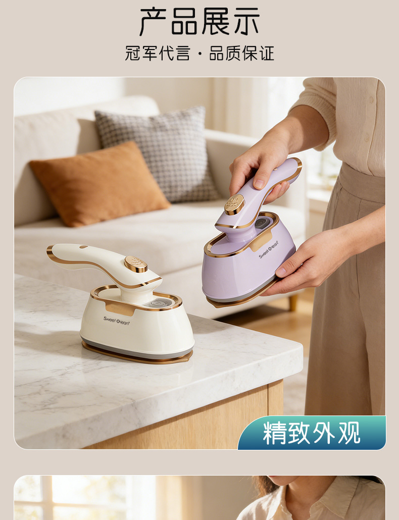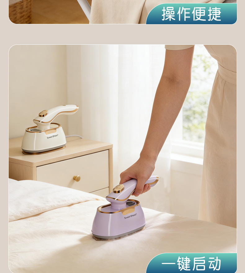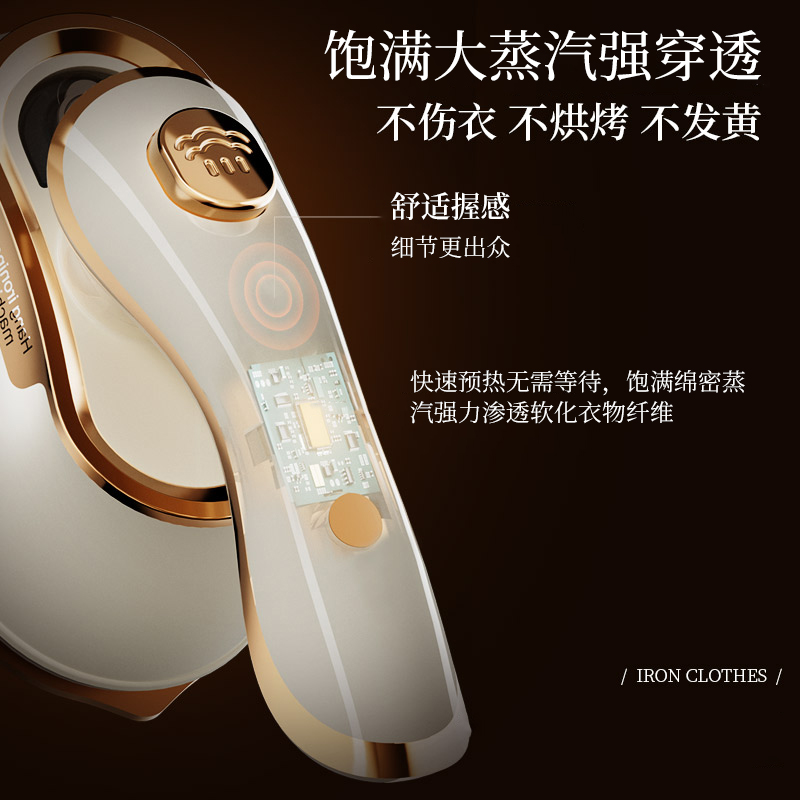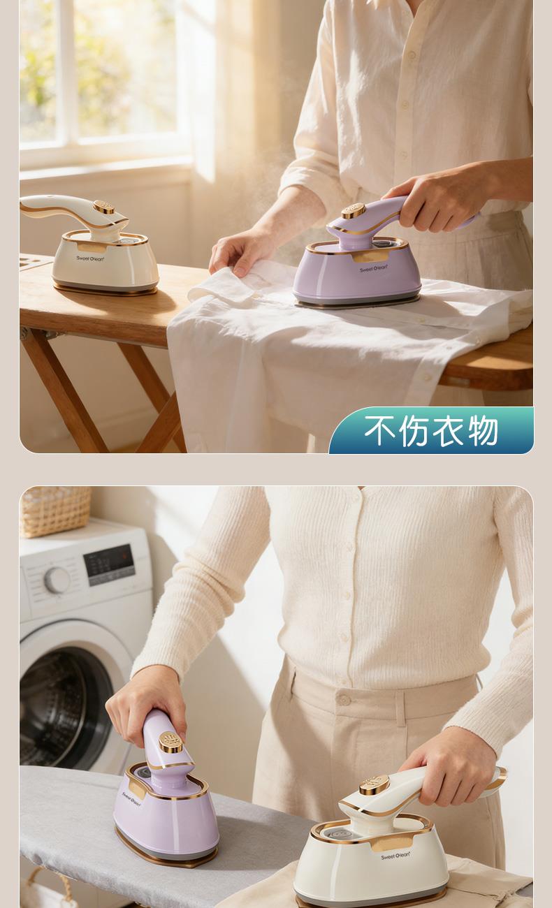额定功率:1000w 水箱容量:45ml 额定电压:220V 预热时间:30s 额定频率:50HZ 干湿双烫 + 干蒸汽黑科技 聚能高压细腻干蒸汽,强劲穿透软化纤维,瞬抚褶皱;干熨不湿衣、不留水渍,即熨即穿;湿熨打蒸汽深层除皱,双模式适配不同面料需求。 30s 速热 + 1000W 大功率,熨衣不等待 30 秒快速预热出汽,1000W 大功率加持,速熨一步定型,告别漫长等待,一件衬衫两下即平。 顺滑陶瓷釉大面板,效率翻倍还护衣 陶瓷釉涂层防刮防勾丝,熨烫效率提升 2 倍;丝滑推烫不产生二次褶皱,不伤衣、不烘烤、不发黄,精致呵护各种面料。 45ml 大容量水箱,持久熨烫不麻烦 一次加满可持续熨烫 6 分钟,告别频繁加水,轻松搞定全家衣物。 1° 微翘黄金弧度 + 90° 旋转手柄,细节熨烫无死角 1° 微翘弧度烫衣领、纽扣等难烫部位;90° 旋转手柄随心所欲,适配多种面积布料,持烫 / 平烫都顺手。