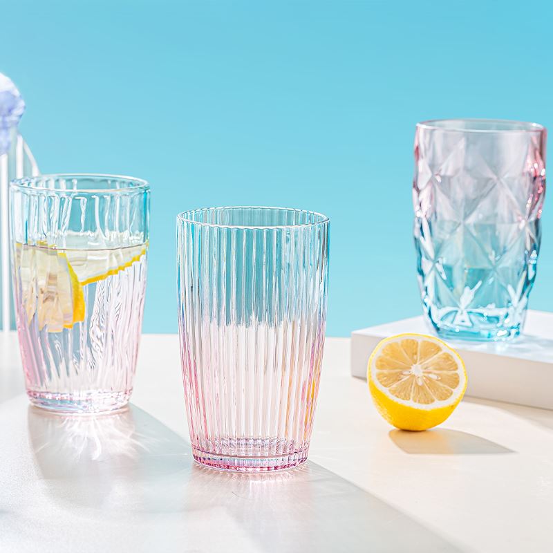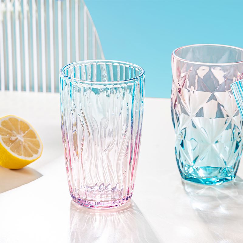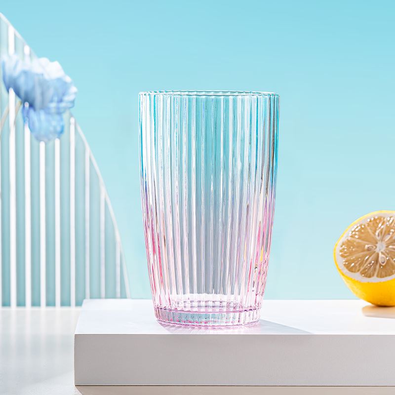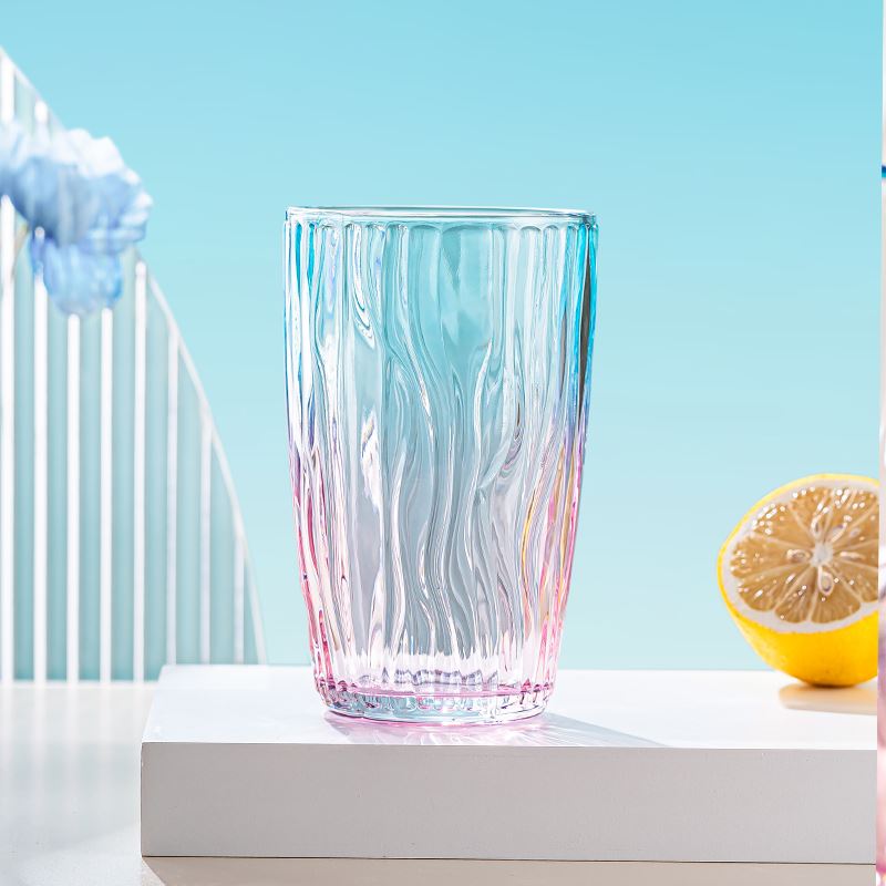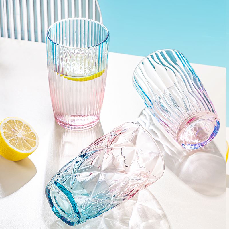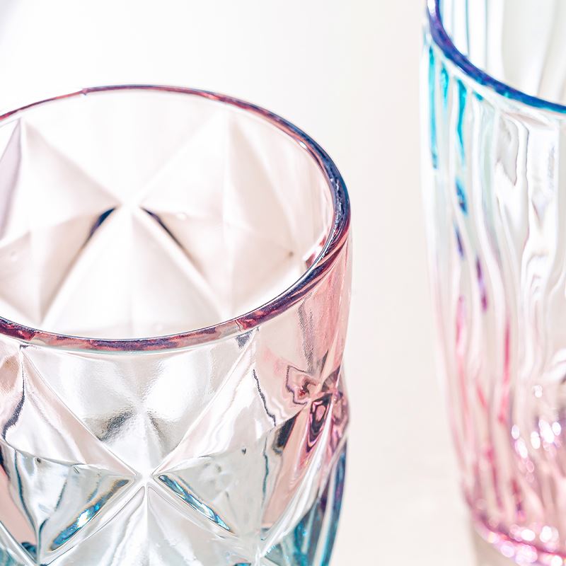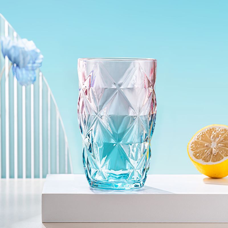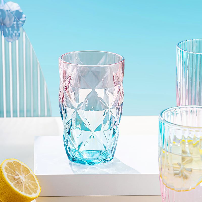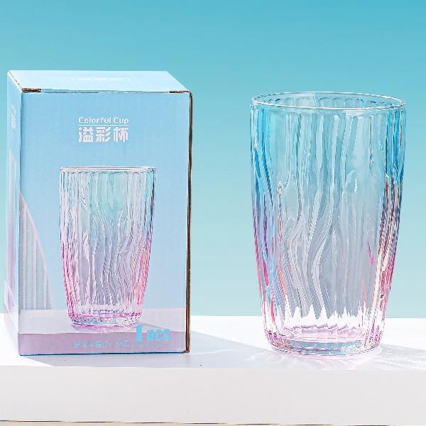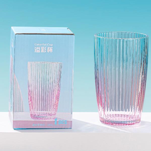 货号:YC/L1 溢彩杯(钻石纹/竖纹/水波纹) 规格:48套 组合:玻璃杯*1(杯口径8.2 cm 高13.8cm 底径:6cm) 容量:480ml 产品卖点:生活需要彩色,为你点亮每一个日常,溢彩玻璃杯三种款式供你挑选,钻石纹仿若将璀璨星光凝于杯身,每一次举杯,都似握住了熠熠光芒,尽显精致格调;竖纹简约而不失优雅,线条流畅,宛如灵动的音符在杯壁跳跃,为生活奏响美妙旋律;水波纹则如春日湖面泛起的涟漪,清新自然,带来丝丝灵动与惬意 彩盒尺寸:8.9*8.9*14.2CM 外箱尺寸:55.8*37.6*30.2CM 重量:20.9KG