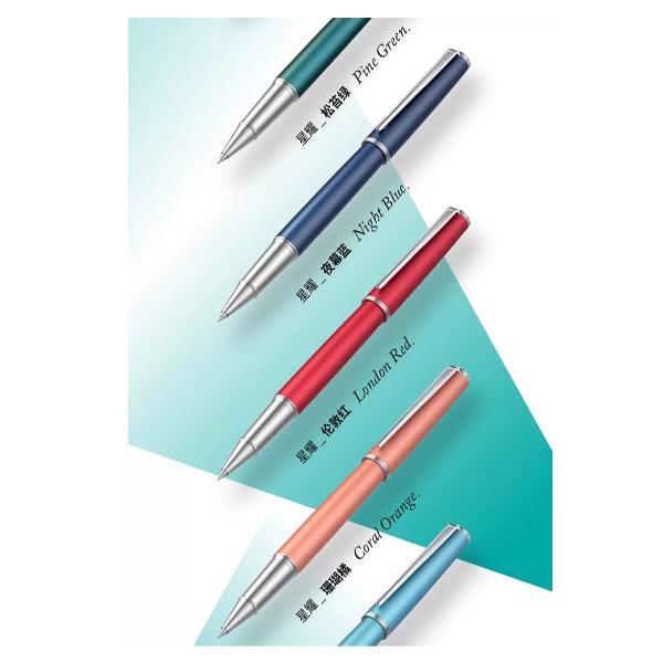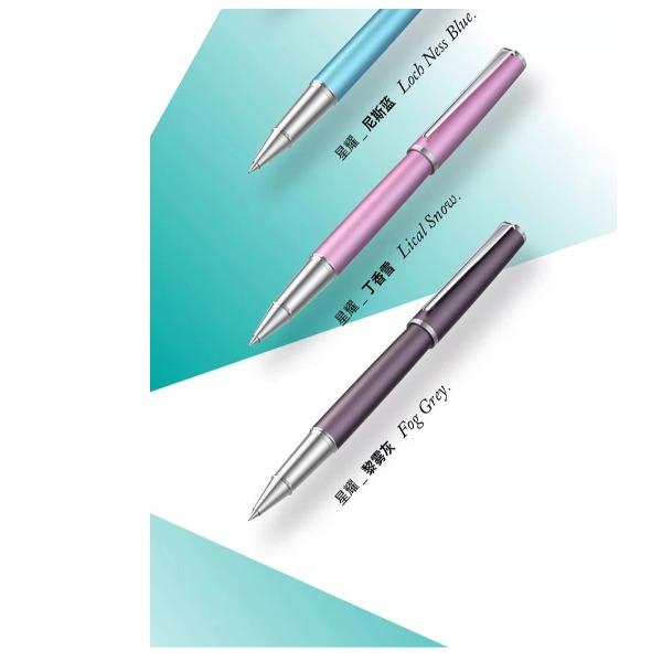 型号:星耀系列签字笔 类型:可替换芯宝珠笔 重量:墨水/宝珠笔25g/30g 颜色分类:曜夜黑金/曜夜黑银/黎雾灰/松苔绿/夜幕蓝/伦敦红/珊瑚橙/云雾白尼斯蓝/丁香雪 书写粗细:0.6mm 整笔材质:铝铜 笔盖:卡扣嵌套设计 笔握:24mm中距笔握 套餐类型:官方标配 包装方式:鸿运笔记本礼盒装 适用场景:送礼书写 适用人群:文艺青年 笔杆材质:金属笔身纹理:磨砂