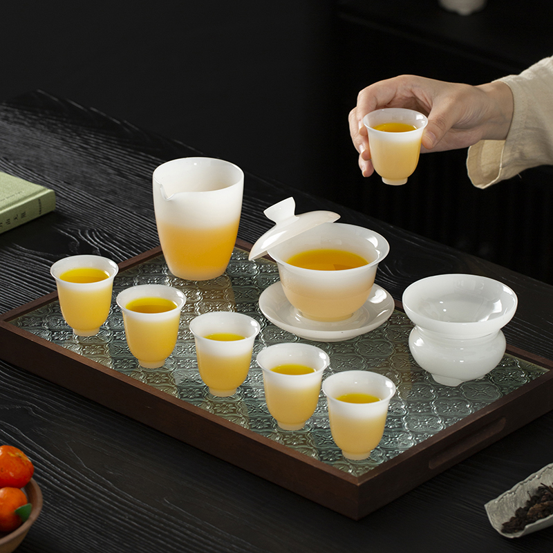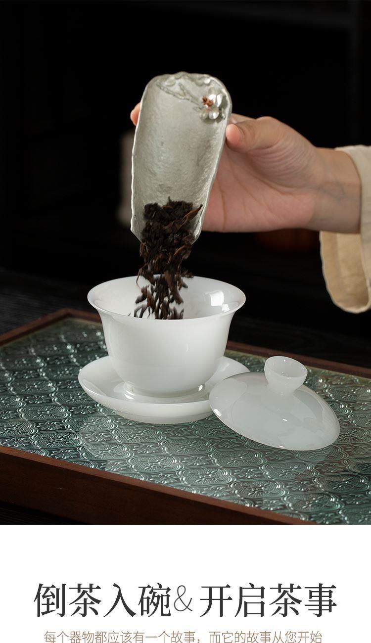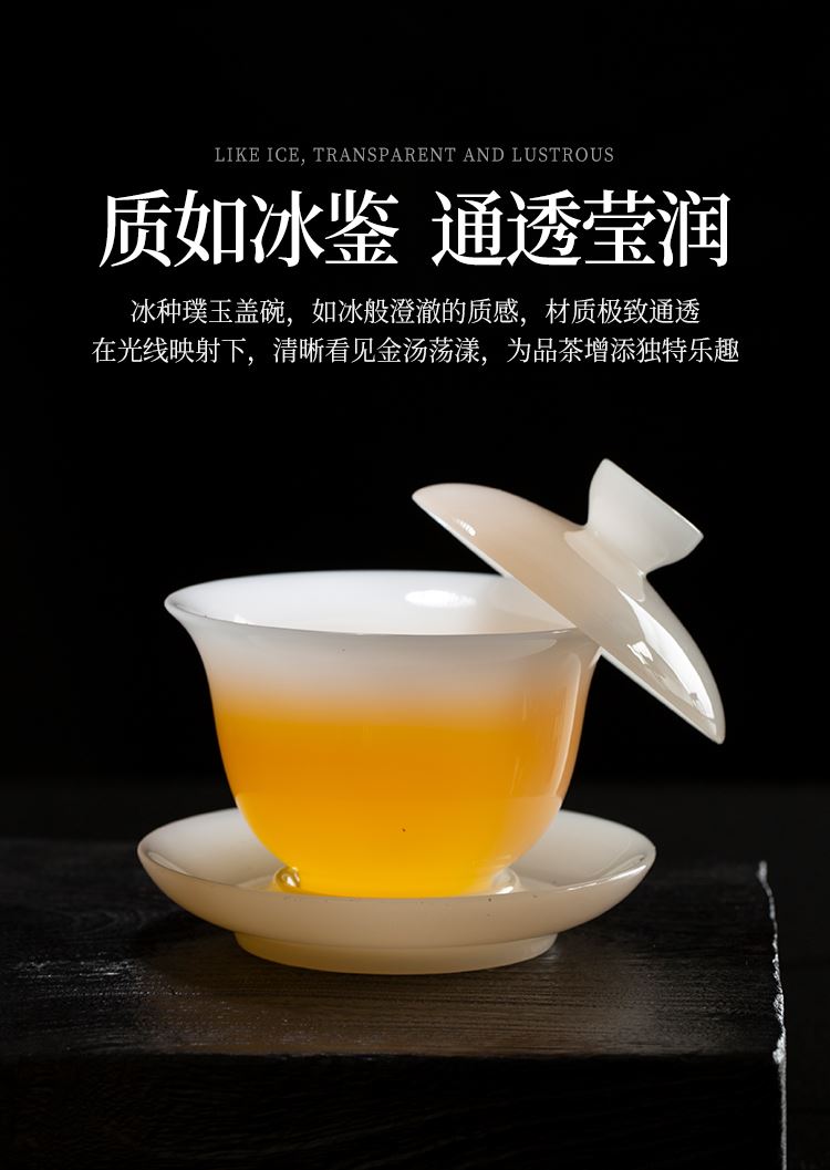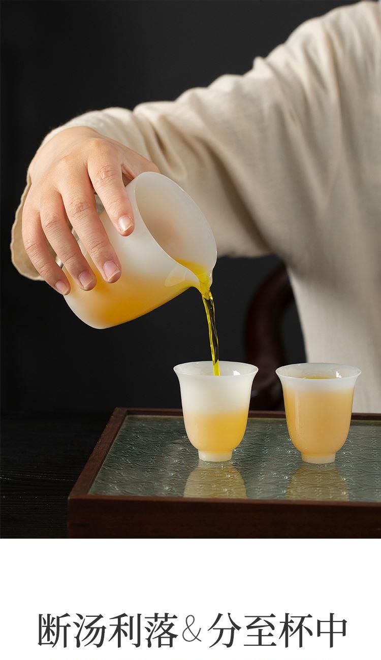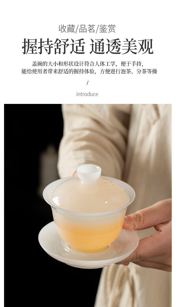 配置:品茗杯*6 公道杯*1 盖碗*1 茶漏*1 皮包*1 材质:璞玉 礼盒尺寸:38.7cm*13.6cm*26.5cm 产品尺寸:盖碗:容量160ml 品茗杯: 容量50ml 公道杯:容量210ml