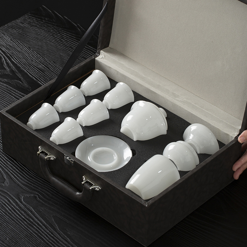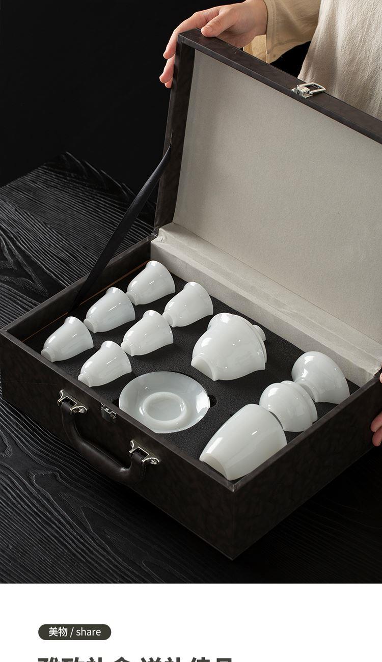 云博陶瓷璞玉皮盒10头茶具套装中国白冰种玉瓷商务礼品会议礼