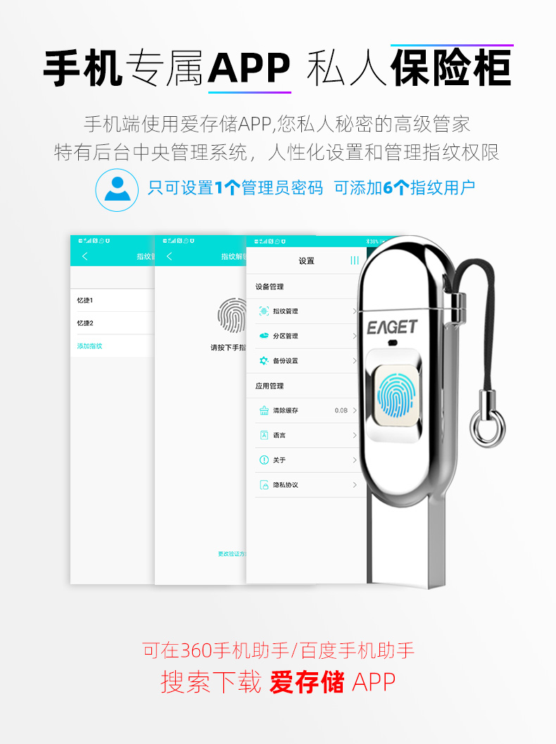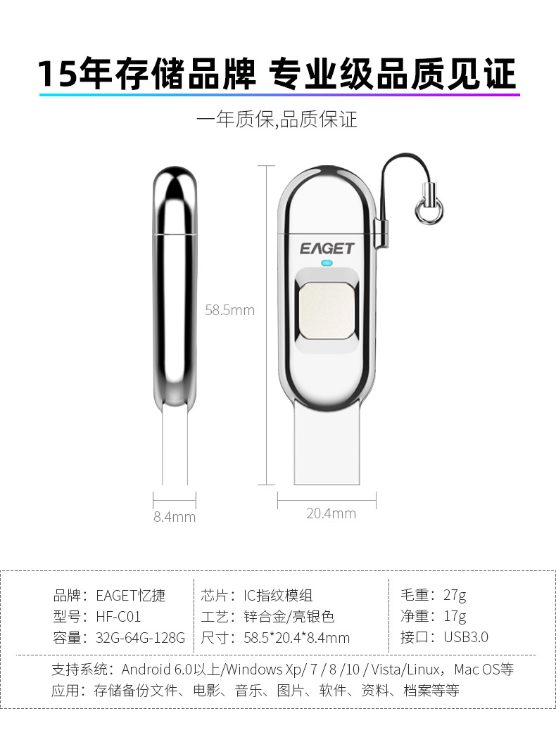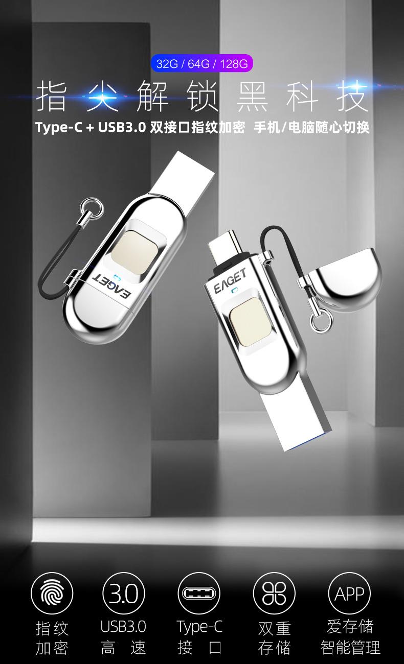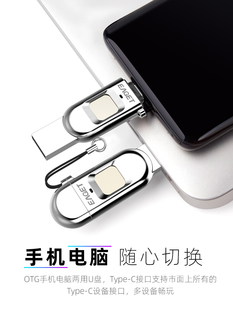 (EAGET)忆捷HF-C01指纹加密手机U盘64G
