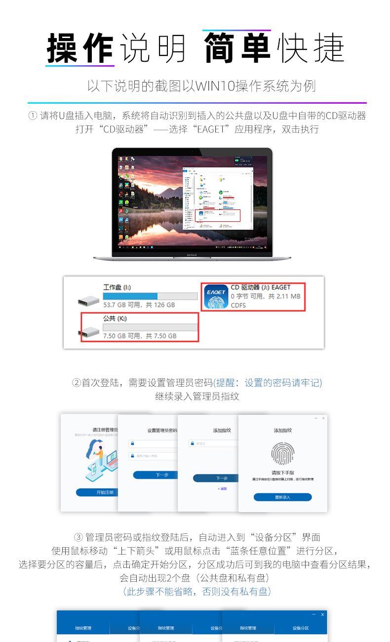 Type-C/USB3.1双接口 采用双接口传输 USB3.0高速传输 一键识别、指纹加密 自由分区、广泛兼容 产品尺寸:58.5*20.4*8.4mm 包装尺寸:113*100*10mm 单品重量:17g