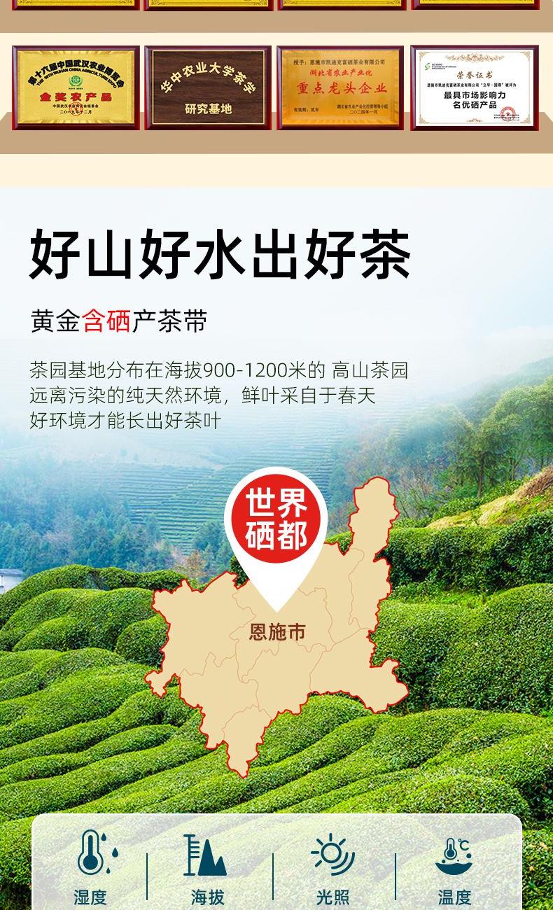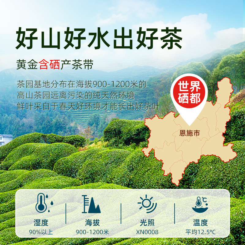 茶叶等级:一级 净 含 量:200g 产品口感:鲜爽·清香持久 产地:湖北省恩施市 冲泡水温:85℃左右 贮存方式:防潮、通风、避光、防异味、冷藏更佳 保 质 期:18个月 卖点: 1、恩施生态农场,茶马专属种植基地,天然含硒,绿色食品认证 2、清明期间春茶,一芽一二叶,6-7斤鲜叶制1斤茶 3、精美瓷罐礼盒装,一级精选,送礼,待客,商务皆可