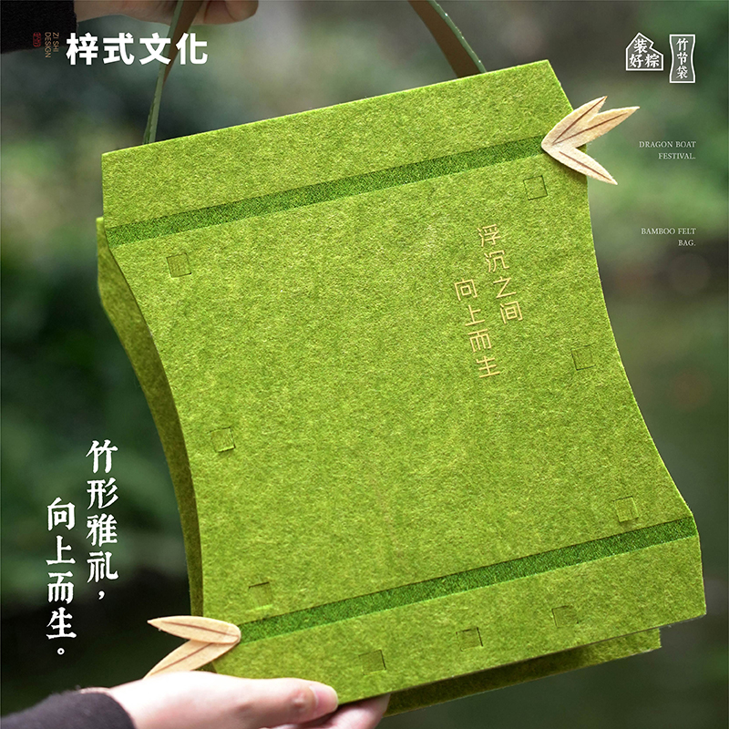 梓式文化竹节承礼向上而生毛毡粽子礼袋