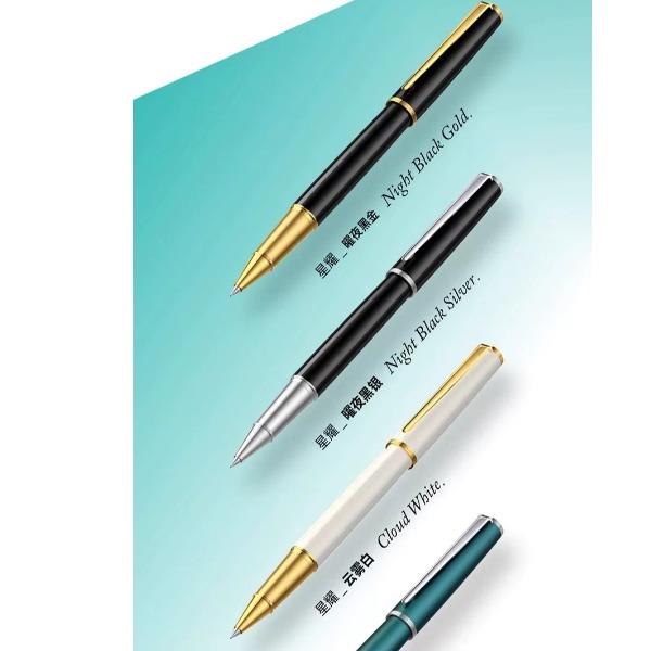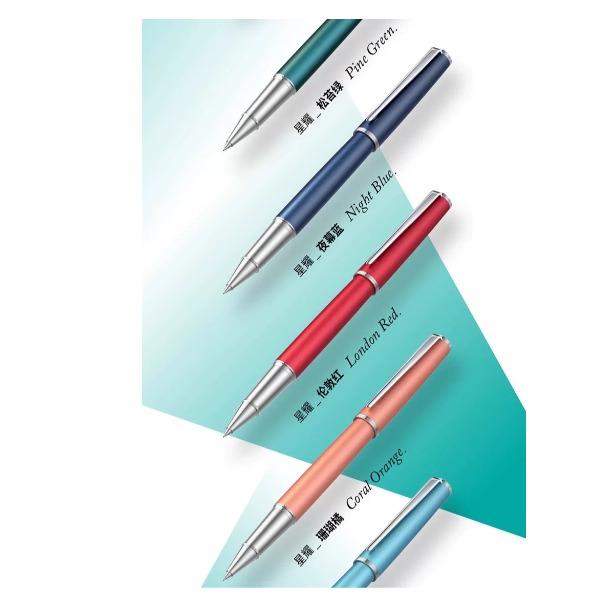 型号:星耀系列签字笔 类型:可替换芯宝珠笔 重量:墨水/宝珠笔25g/30g 颜色分类:曜夜黑金/曜夜黑银/黎雾灰/松苔绿/夜幕蓝/伦敦红/珊瑚橙/云雾白尼斯蓝/丁香雪 书写粗细:0.6mm 整笔材质:铝铜 笔盖:卡扣嵌套设计 笔握:24mm中距笔握 套餐类型:官方标配 包装方式:鸿运笔记本礼盒装 适用场景:送礼书写 适用人群:文艺青年 笔杆材质:金属笔身纹理:磨砂