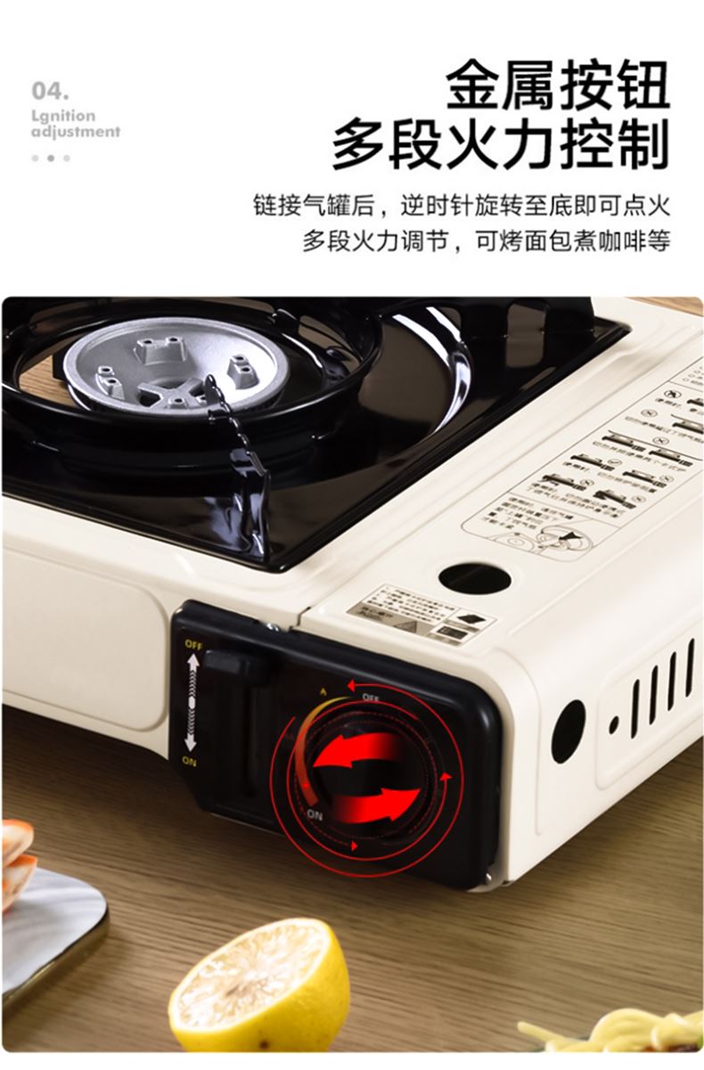 材质:铁+麦饭石 颜色:米白 规格:卡式炉+烤盘 商品尺寸:26*34*8.2cm(卡式炉)、 烤盘(直径28cm) 商品类型:卡式气炉 商品净重:2.2kg 1、小巧便携,无烟烹饪; 2、过压保护安全阀,放心使用; 3、节能省气,强大火力; 4、多档调节,自由切换; 5、卡式炉手提盒包装,携带方便;