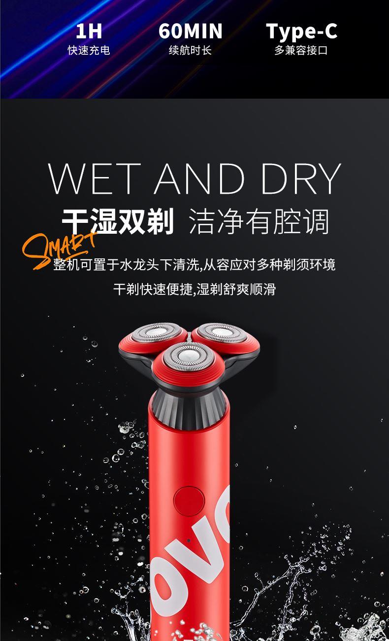 "1、磁吸刀头玩转科技感; 2、自动研磨久用如新; 3、3D浮动弹性贴合难剃部位; 4、TYPE-C 1小时快充续航2个月; 5、约8500高转速马达浓密胡须也能快速剃; 6、干湿双剃,洁净有腔调; 7、澎湃锋利系统,剃须无残留; "