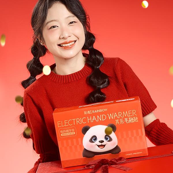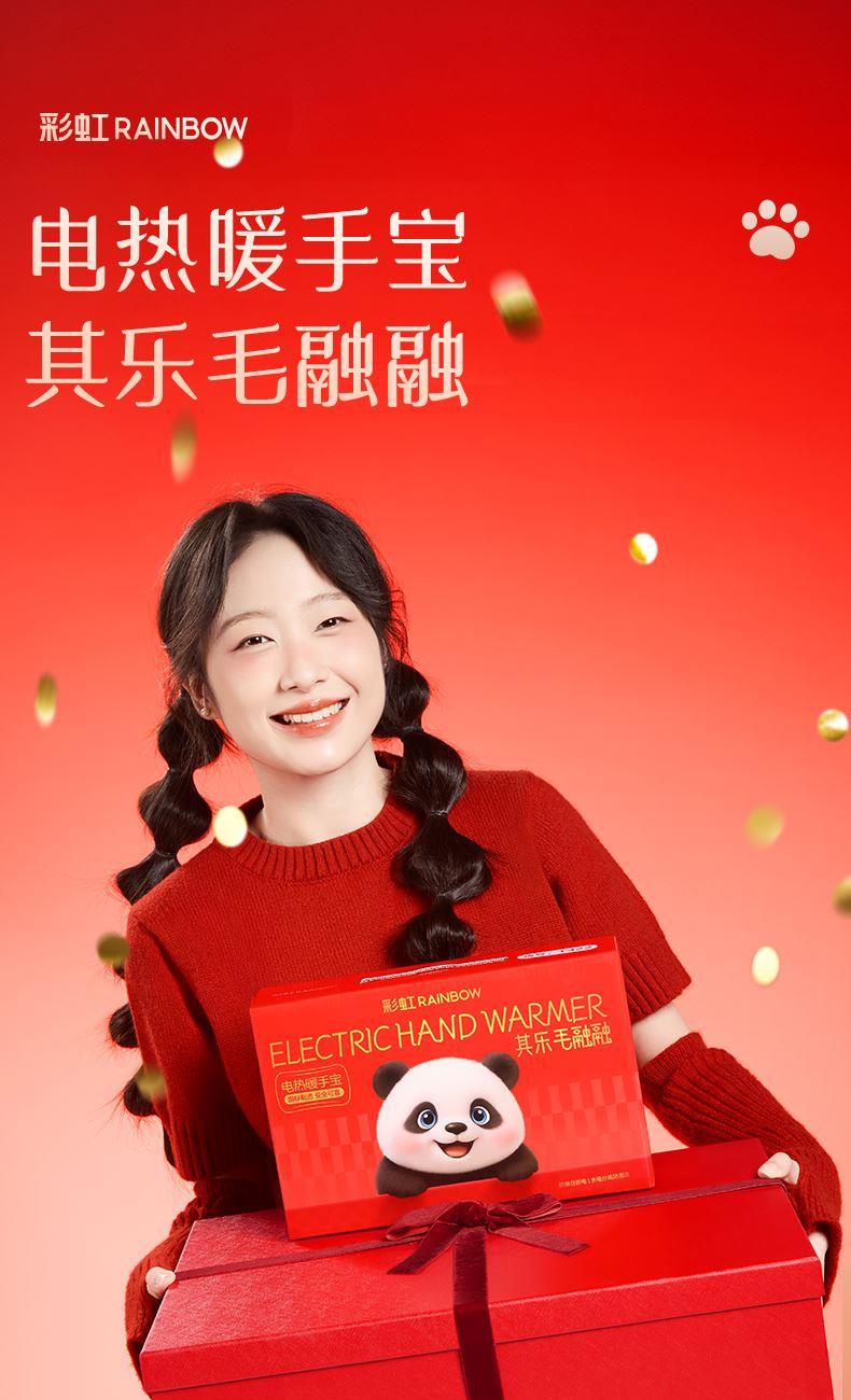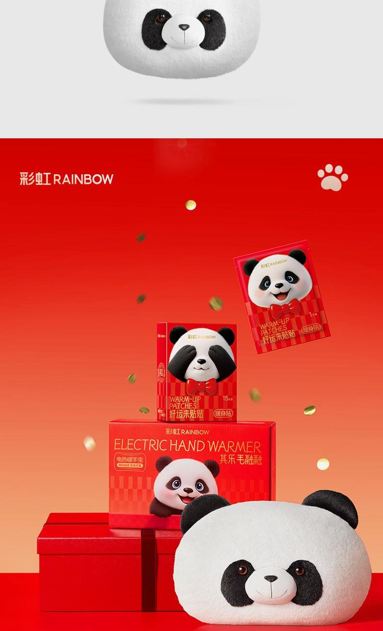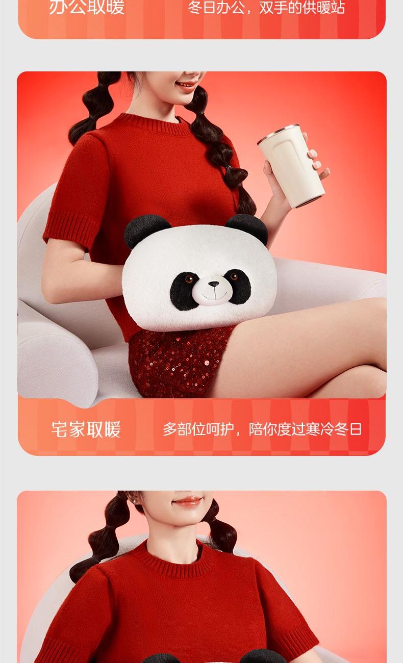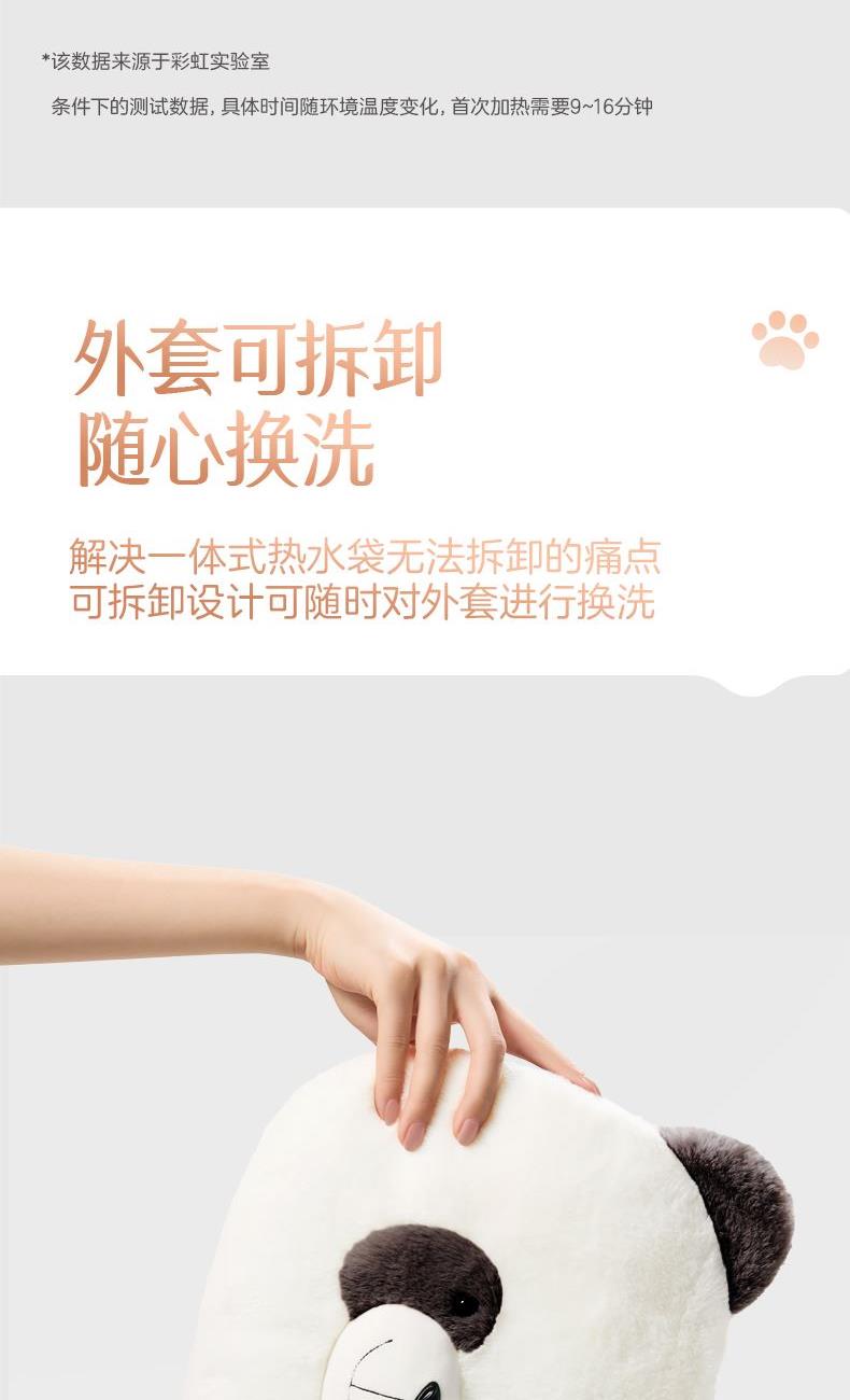 彩虹T616熊猫可拆洗加厚亲肤绒插手电热暖手宝