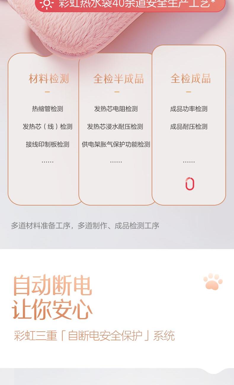卖点 型号:DR40-1 B 功率:430W 功能:可拆洗、防爆、防触电、防漏液、水电隔离,自动控温限温 面料:优质加厚亲肤绒 包装:彩盒 参数 1、优质加厚亲肤绒 2、七重安全保护 3、防爆、防触电、防漏液 4、水电隔离,自动控温限温! 5、礼品属性,包装精美 6、立体熊猫造型 7、面料可拆洗