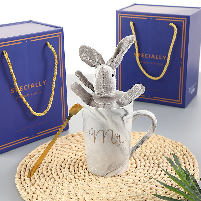 材 质:优质骨瓷 包 装:礼盒 颜 色:灰色,粉色 容 量:400ml 杯子采用新骨瓷,安全卫生、经久耐用。 可爱小兔子玩偶 造型可爱,功能实用,多色可选。
