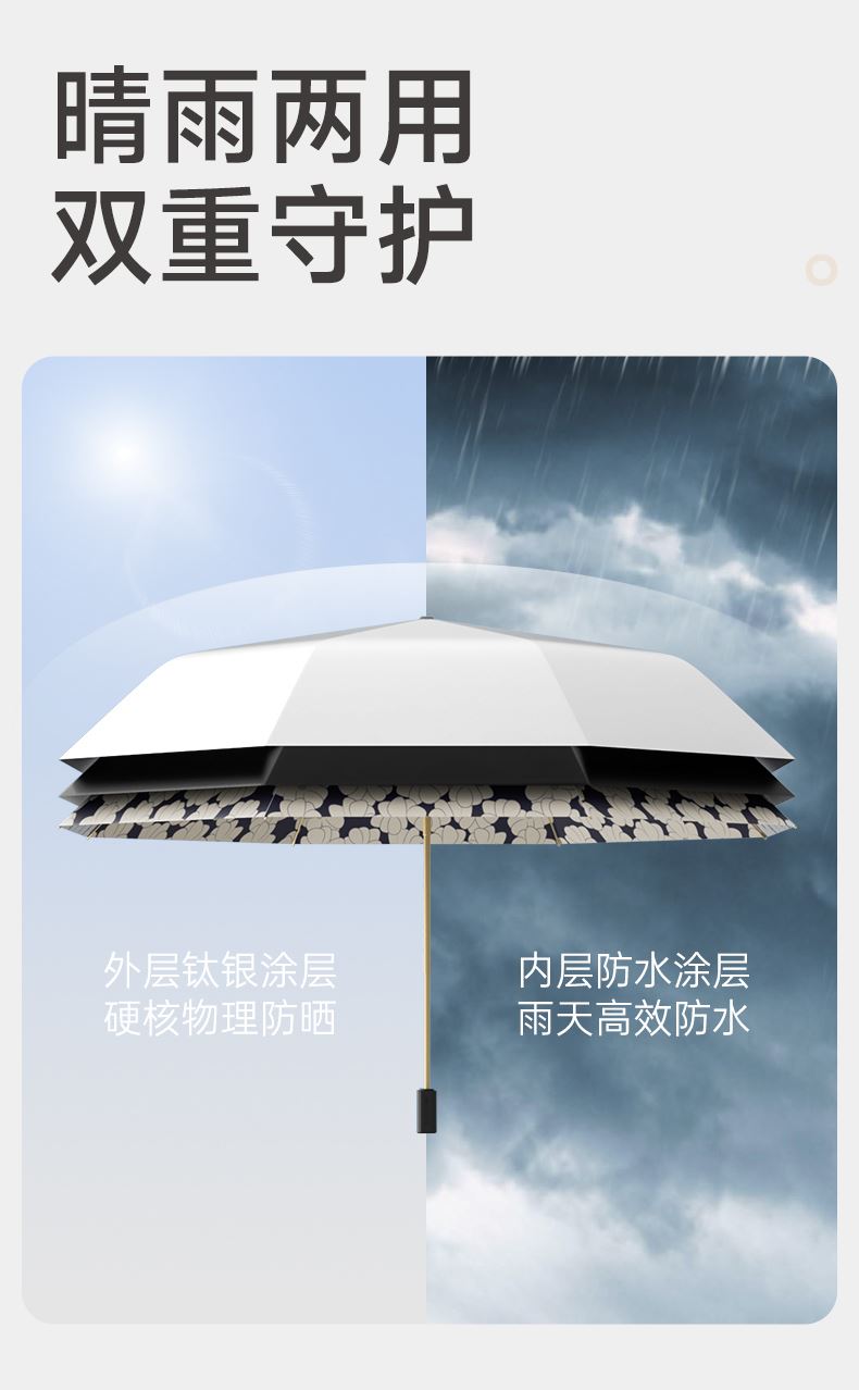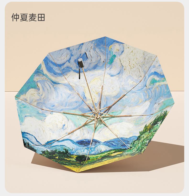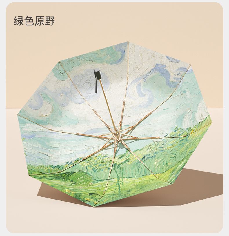 左都ZD147-钛银数码油画系列三折加大款防晒遮阳伞