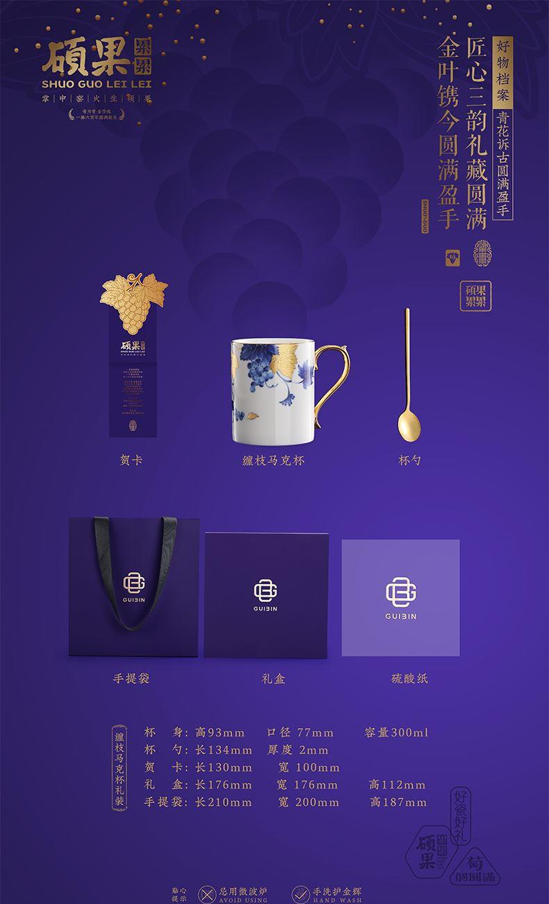 1.杯身:高93mm、口径 77mm、容量300ml 2.杯勺:长134mm、厚度 2mm 3.贺卡:长130mm、宽 100mm 4.礼盒:长176mm、宽 176mm、高112mm 5.手提袋:长210mm、宽 200mm、高187mm